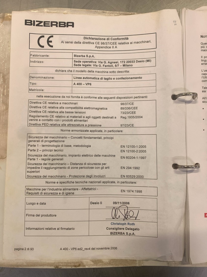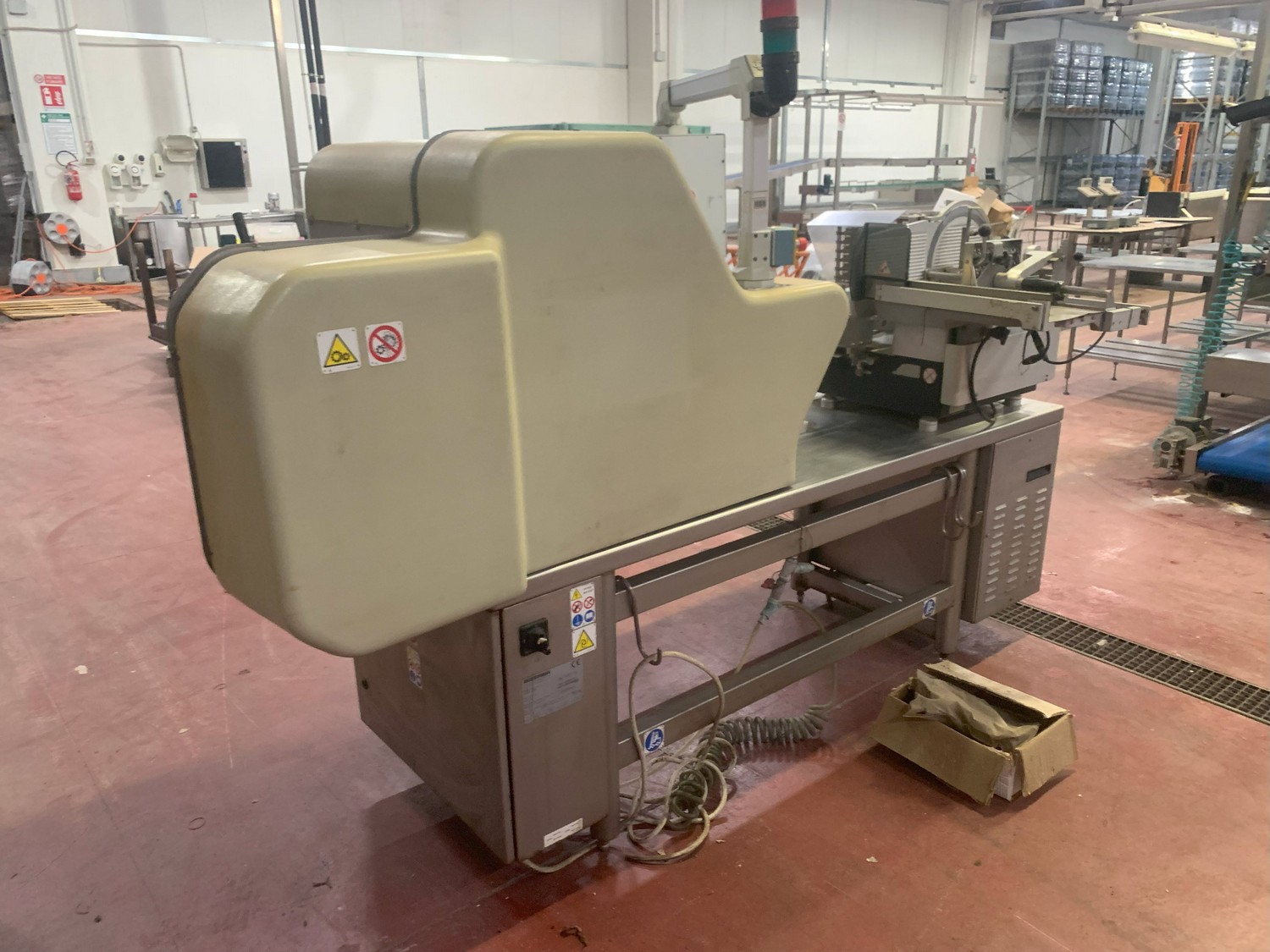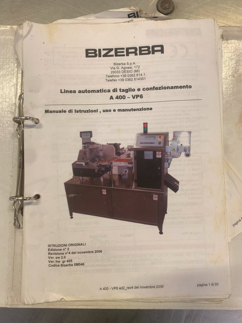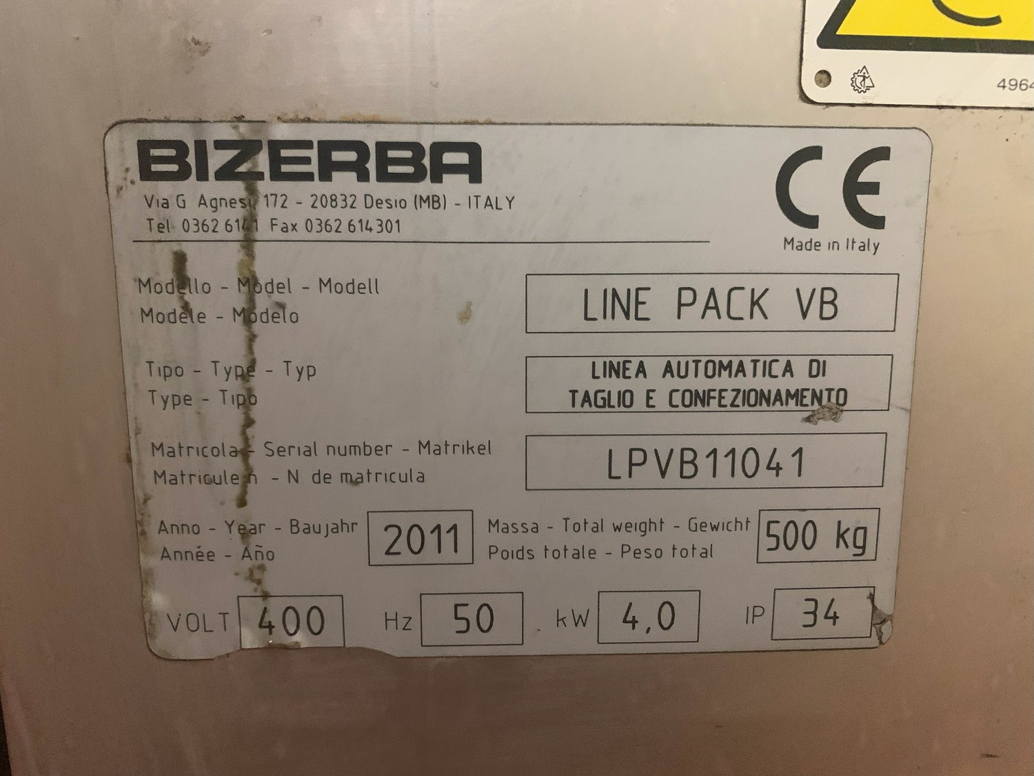 Bizerba automatic slicing and packaging line, type: LINE PACK VB, type: LINEA AUTOMITICA DI TAGLIO E CONFEZIONAMENTO, serial number: LPVB11041, year of construction: 2011, 400 V, 50 Hz, 4.0 kW, weight: 500 kg, dimensions: 2650 mm x 1100 mm x 1800 mm. Technical condition unknown.