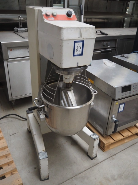 Dito-Sama bowl mixer, type: MC40S, serial number: 19274 0230 025, 230/400 V, 3 Ph, 50 Hz, 4.2/2.4 A, 900 W, volume: 40 liter, inside dimensions bowl: ø 400 mm x 400 mm, total dimensions: 620 mm x 750 mm x 1410 mm.