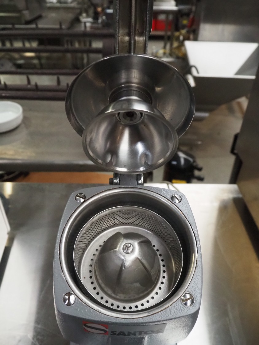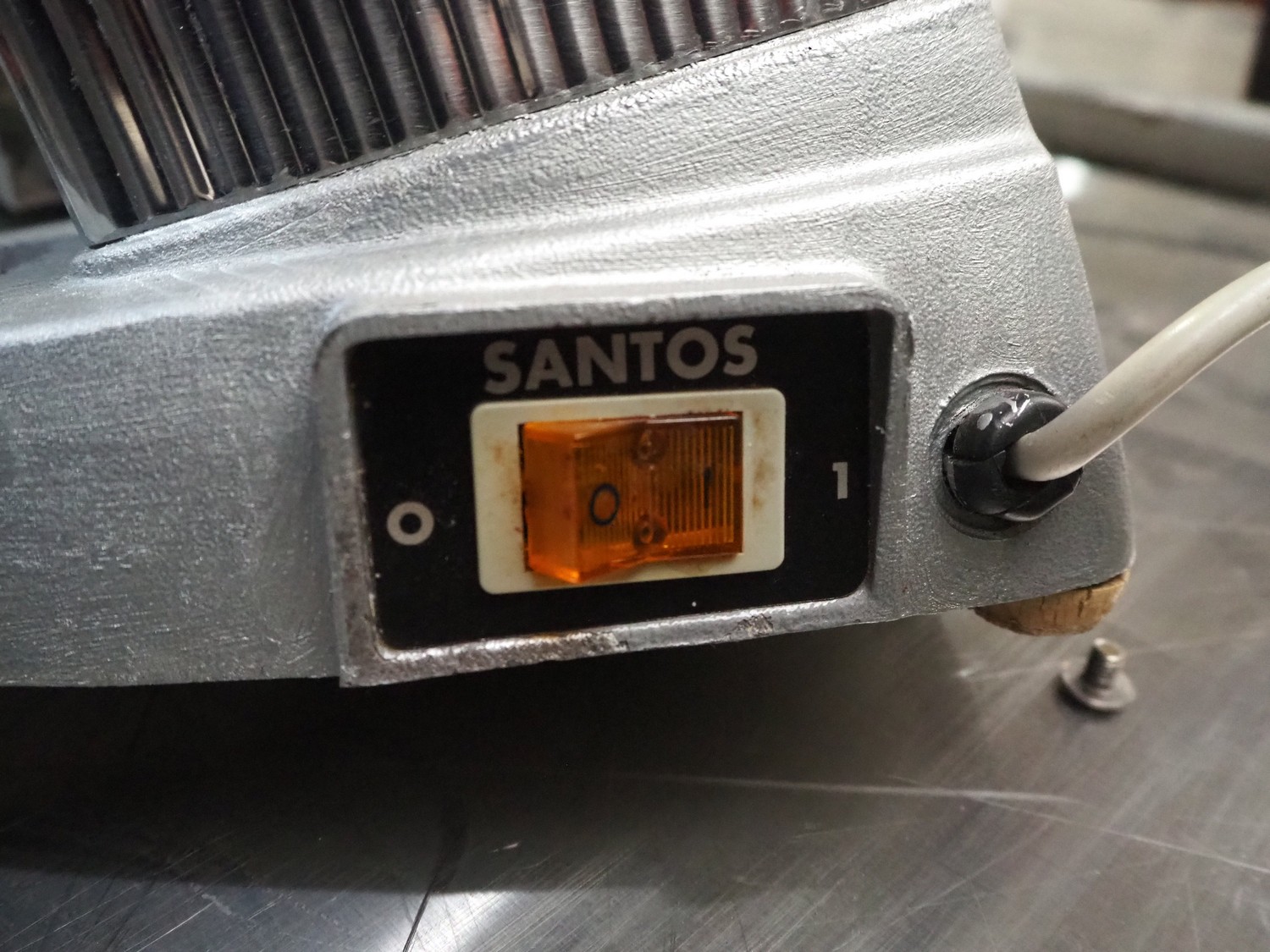 Santos orange press, type: 10, number: 53124, year of construction: 1991, 220 V, 1 Ph, 50 Hz, 1.2 A, dimensions: 290 mm x 200 mm x 380 mm.