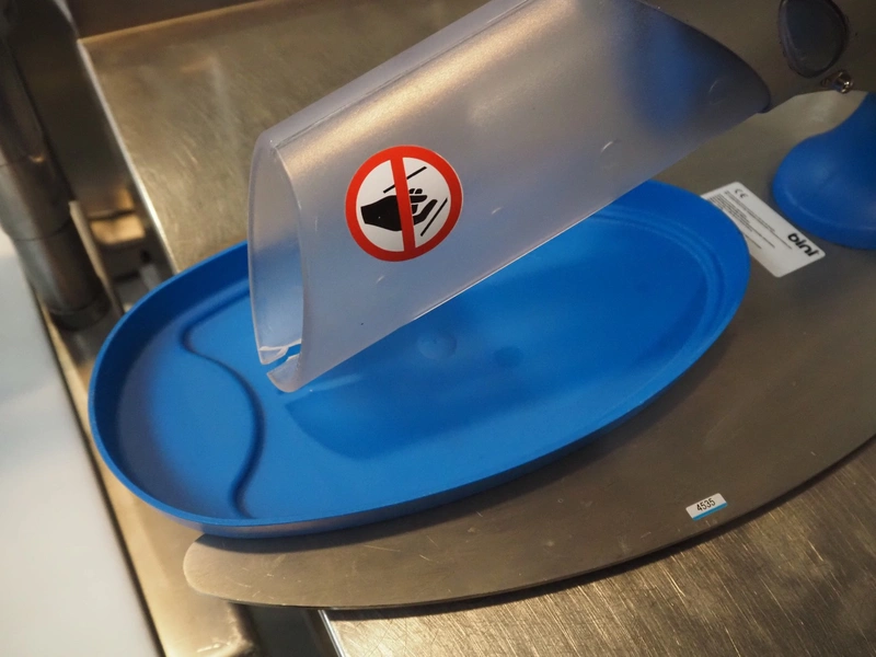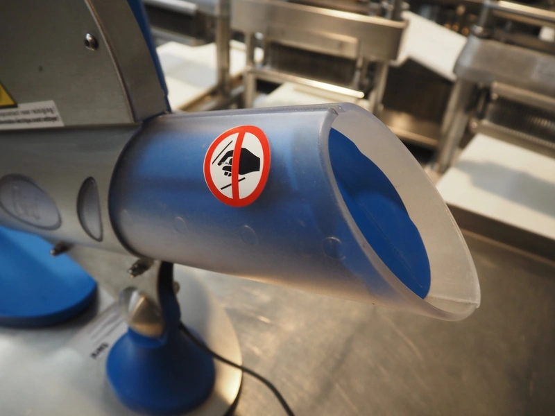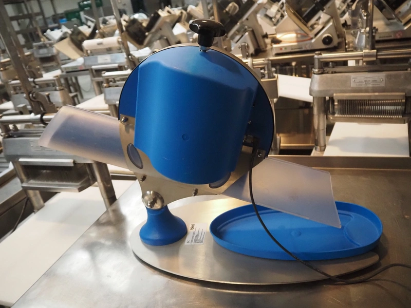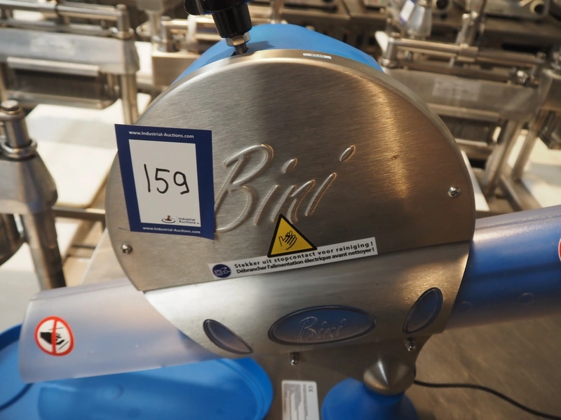 Bini baguette slicer, 230 V, 16 A, weight 13.8 kg, diameter knife: 250 mm, dimensions: 980 mm x 300 mm x 520 mm.