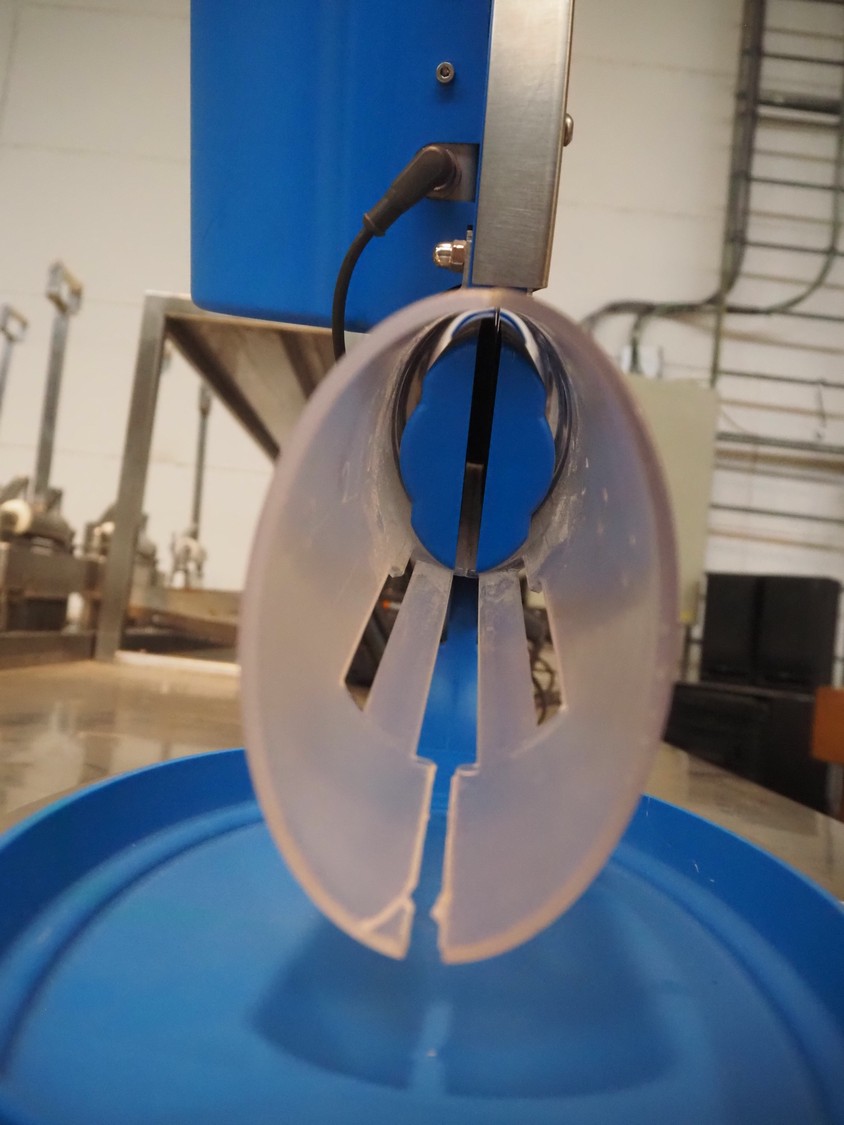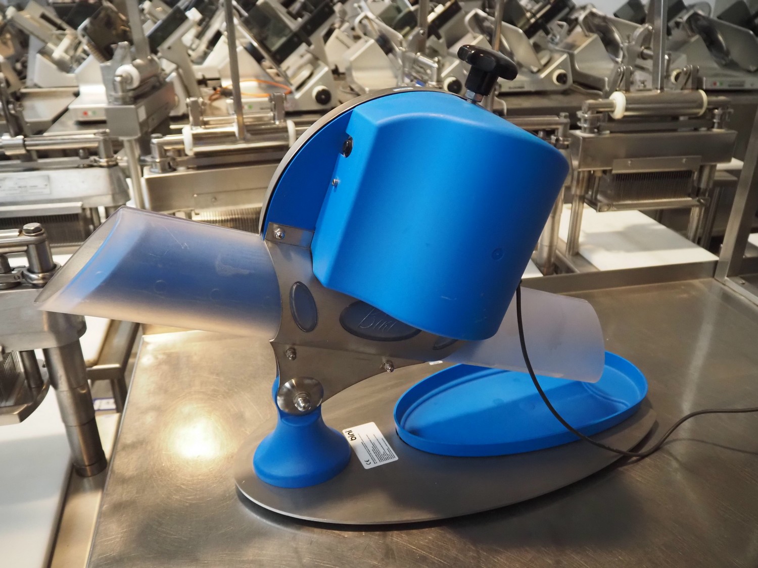 Bini baguette slicer, 230 V, 16 A, weight 13.8 kg, diameter knife: 250 mm, dimensions: 980 mm x 300 mm x 520 mm.