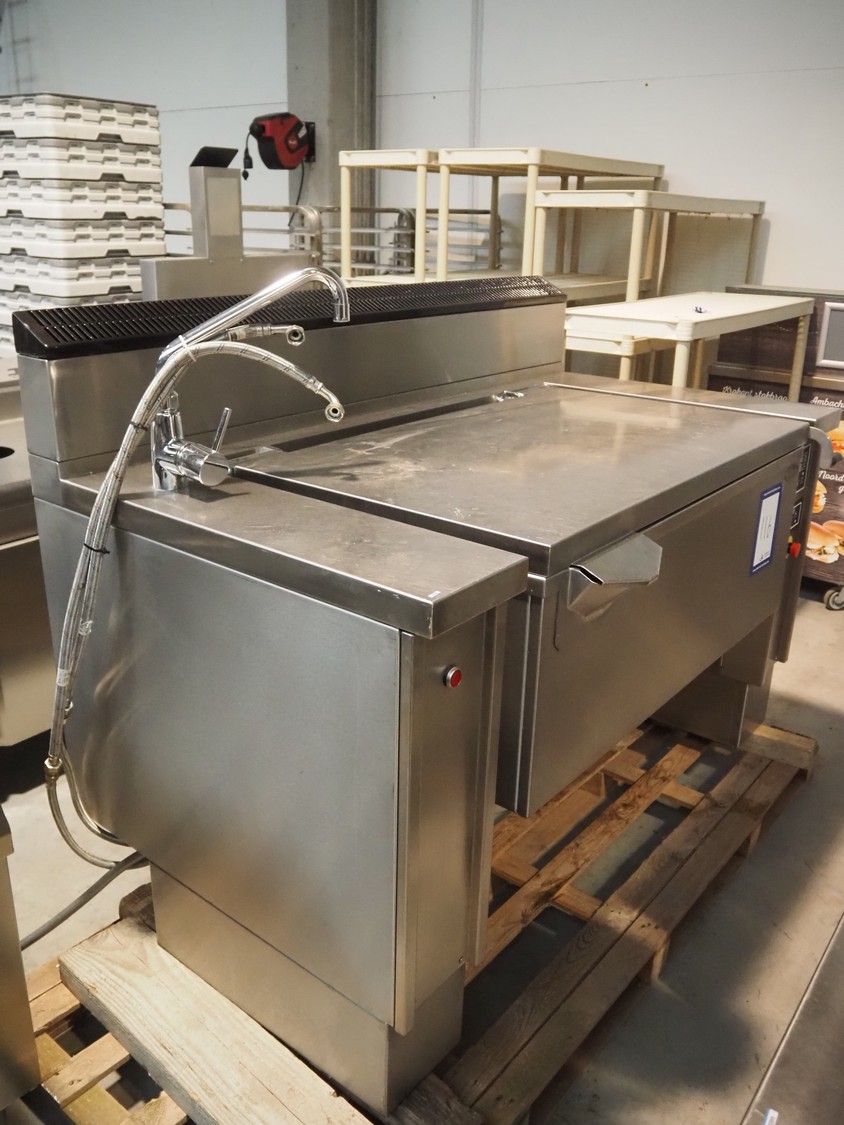 Rubbens braising pan, type: KBP311G, number: 2010 047068 0001, 230 V, 50 Hz, 10 A, 0.7 kW, dimensions inside: 1050 mm x 610 mm x 210 mm, total dimensions: 1640 mm x 1000 mm x 1250 mm.