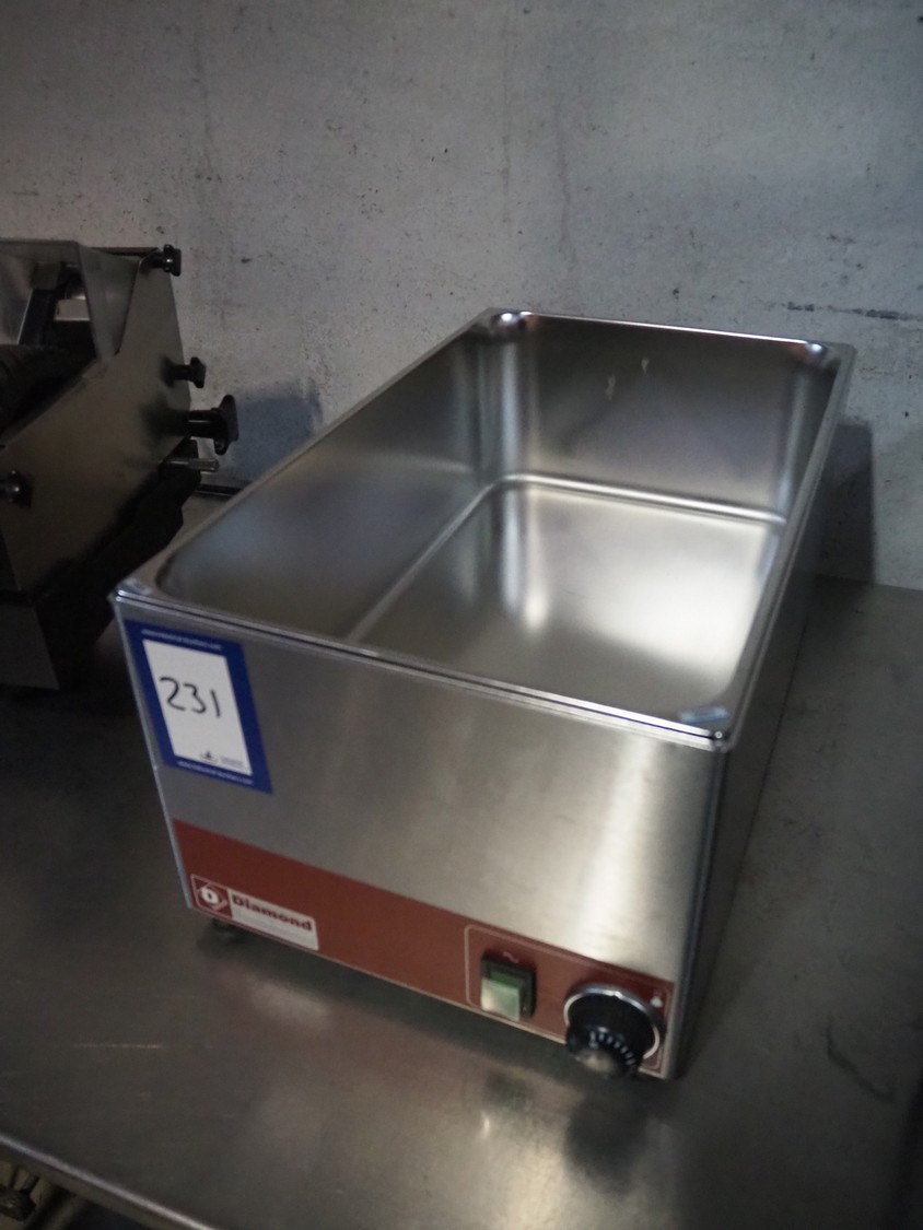Diamond au bain-marie, model: EM1/X, 220/240 V, 50 Hz, 1500 W, dimensions inside: 510 mm x 305 mm x 165 mm, total dimensions: 560 mm x 325 mm x 260 mm.