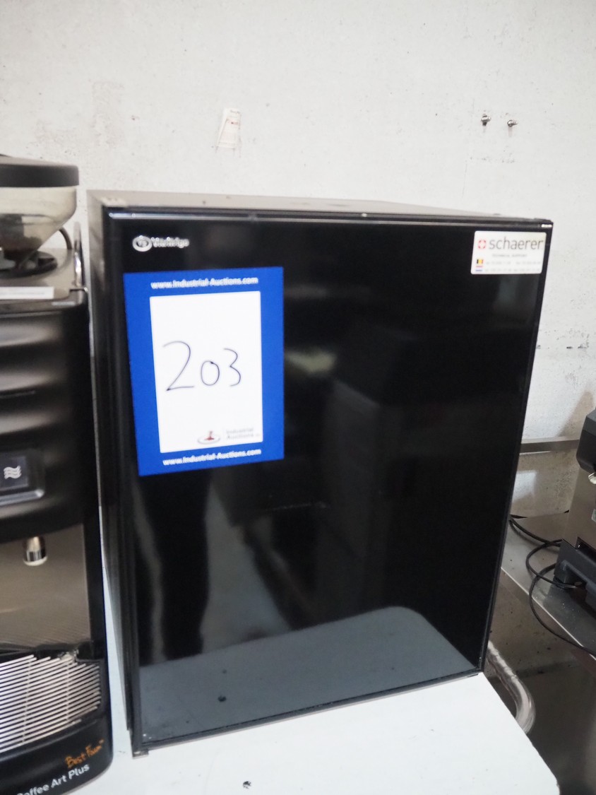 2 Schaerer coffee machines with Vitrifrigo fridge and cabinet, model fridge: C60 P DX, serial number: 16251706, 220/240 V, 50 Hz, 0.17 A, 30.5 W, volume: 60 liter, refrigerant: R600a, dimensions fridge: 430 mm x 470 mm x 610 mm, dimensions coffee machines: (2x) 550 mm x 420 mm x 670 mm, dimensions cabinet: 390 mm x 270 mm x 520 mm.
