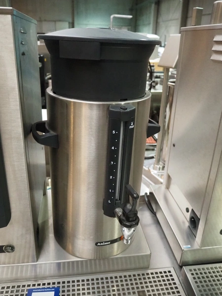 Animo coffee machine, model: CN 5e, serial number: 2T 10010, 220/240 V, 1 Ph, 50-60 Hz, 35 W, dimensions: 530 mm x 430 mm x 700 mm.