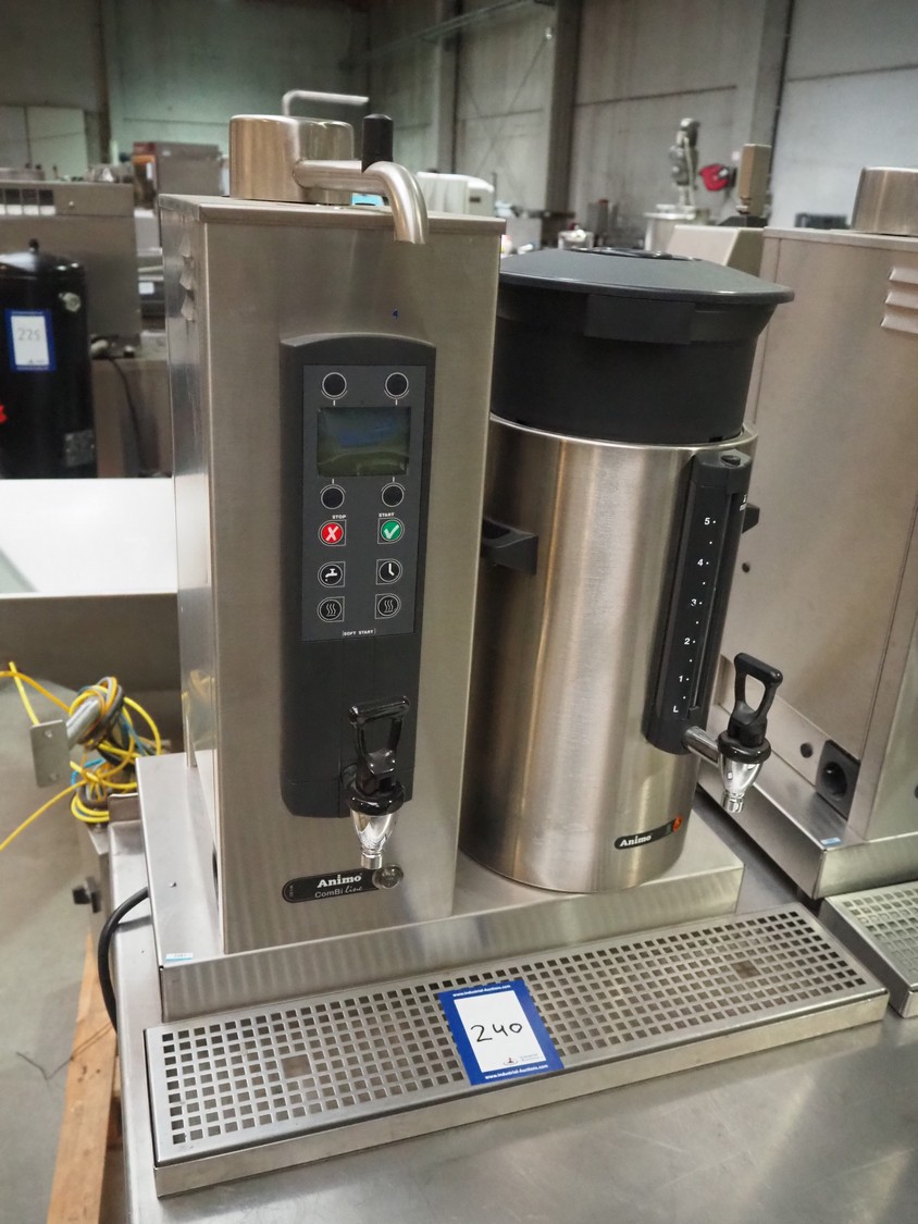 Animo coffee machine, model: CN 5e, serial number: 2T 10010, 220/240 V, 1 Ph, 50-60 Hz, 35 W, dimensions: 530 mm x 430 mm x 700 mm.