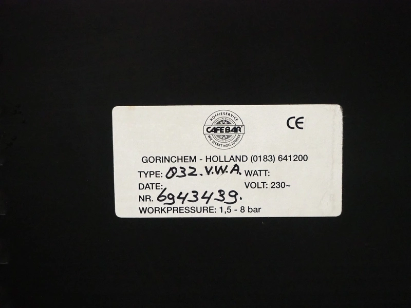 Cafe Bar coffee machine, model: type: 832.V.W.A, number: 6943439, 230 V, dimensions: 500 mm x 250 mm x 460 mm.