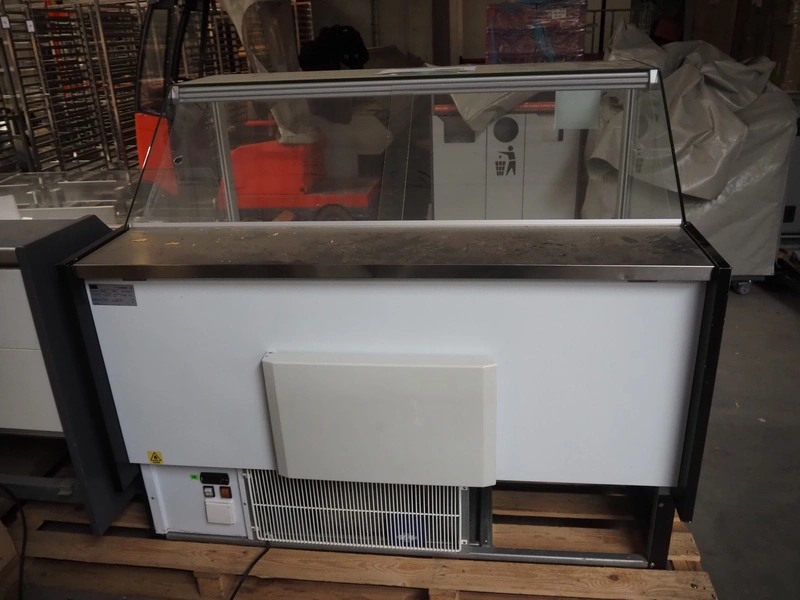 Top Cold refrigerated showcase, model: MYLLO 1.50 M, number: 21/29/008, 220-240 V, 50 Hz, inside dimensions: 1400 mm x 700 mm, total dimensions: 1450 mm x 1060 mm x 1230 mm.