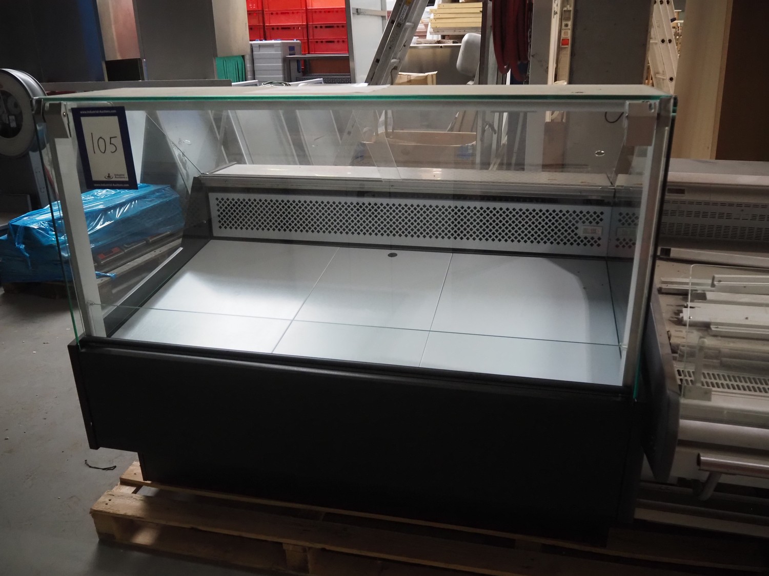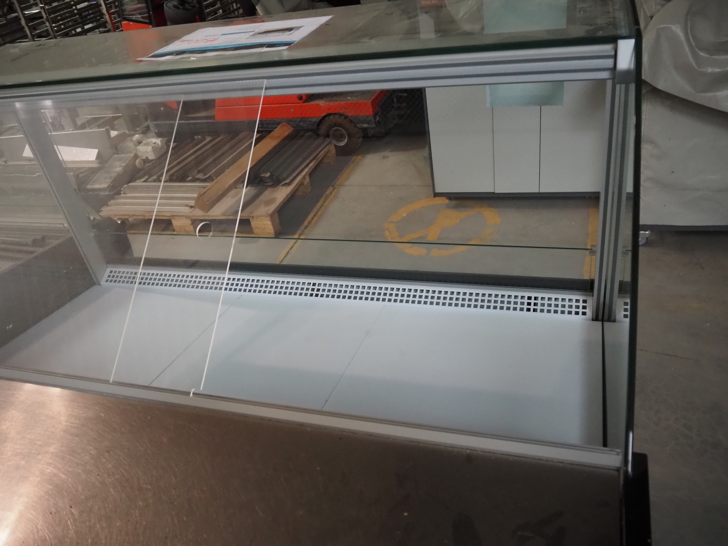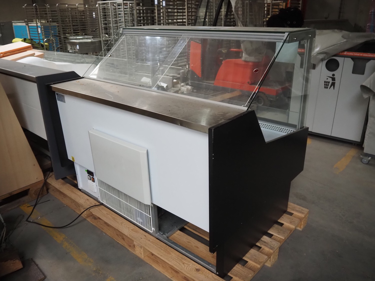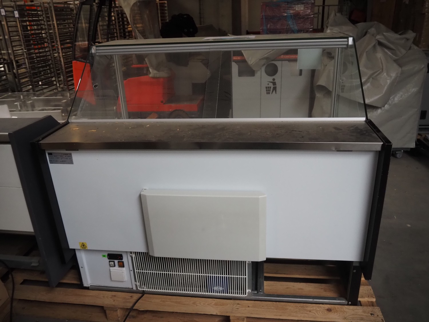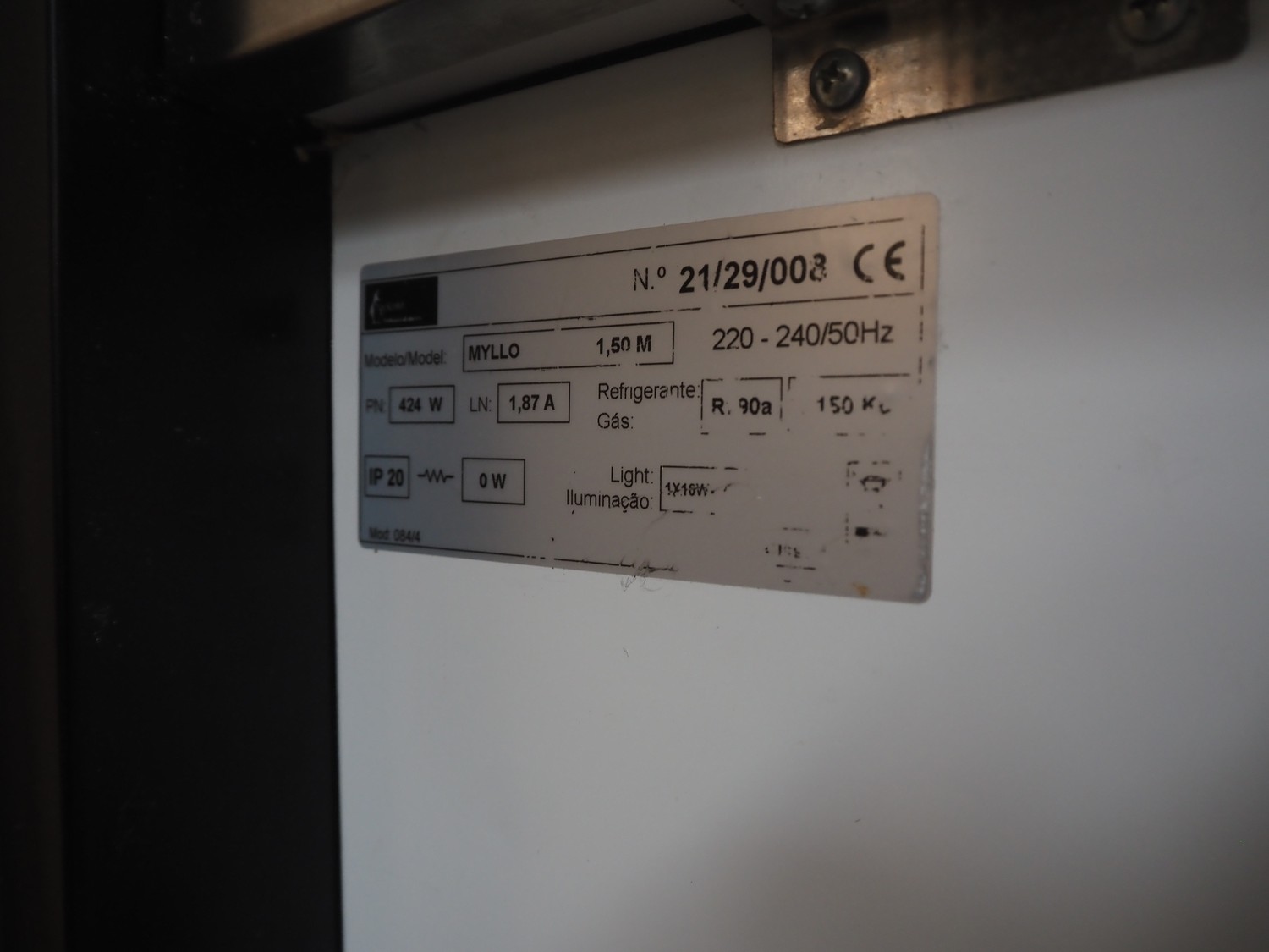 Top Cold refrigerated showcase, model: MYLLO 1.50 M, number: 21/29/008, 220-240 V, 50 Hz, inside dimensions: 1400 mm x 700 mm, total dimensions: 1450 mm x 1060 mm x 1230 mm.