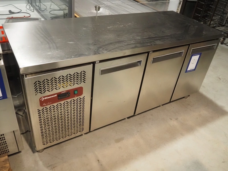 Diamond refrigerated counter model: MR3/R2, serial number: 8102693283, year of construction: 2022, 230 V, 1 Ph, 50 Hz, 1.6 A, refrigerant: R2-230, 102 gram, dimensions: 1800 mm x 700 mm x 850 mm.