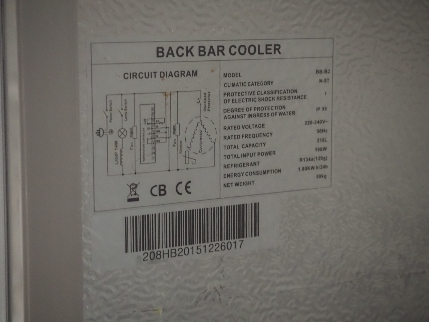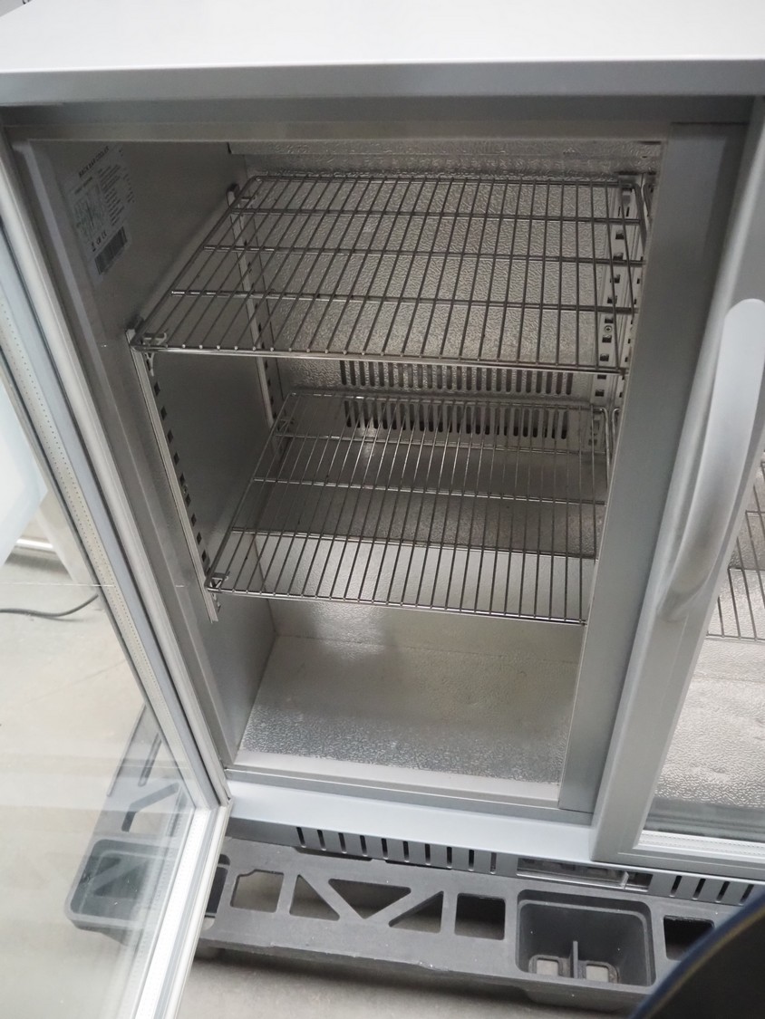 Pelican refrigerated showcase, model: BB-B2, 220/240 V, 50 Hz, 190 W, capacity: 210 liter, weight: 58 Kg, (2x) 2 floors, dimensions each floor: 400 mm x 345 mm, total dimensions: 900 mm x 500 mm x 870 mm.