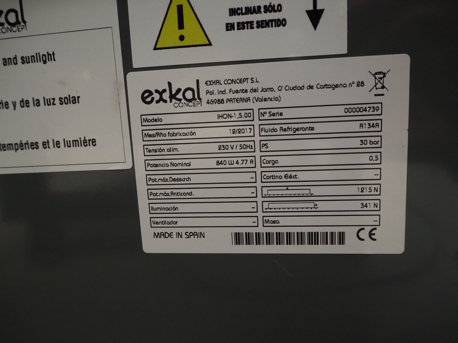 Exkal concept S.L. mobile refrigerated showcase, model: IHON-1,5.00, serial number: 000004739, year of construction: 12/2017, refrigerant: R134A, 230 V, 50 Hz, dimensions: 1150 mm x 1060 mm x 950 mm.