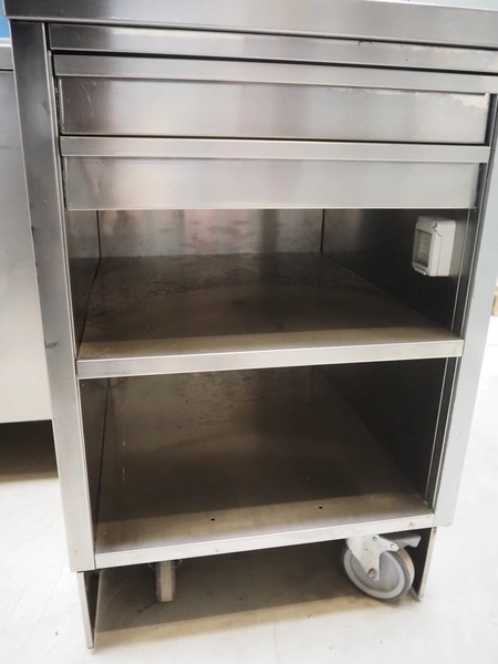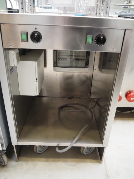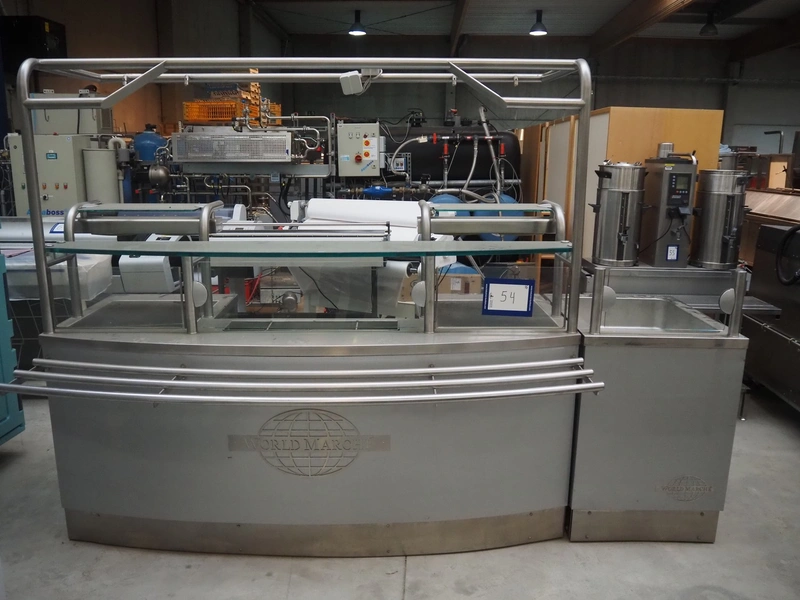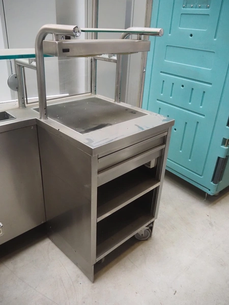 SSP SPA mobile serving counter with 2 warming plates and au bain marie, model: WORLD MARCHE, serial number: 51700001, 400 V, 50 Hz, dimensions: 2080 mm x 1080 mm x 1920 mm, dimensions au bain marie: 640 mm x 780 mm x 1150 mm.