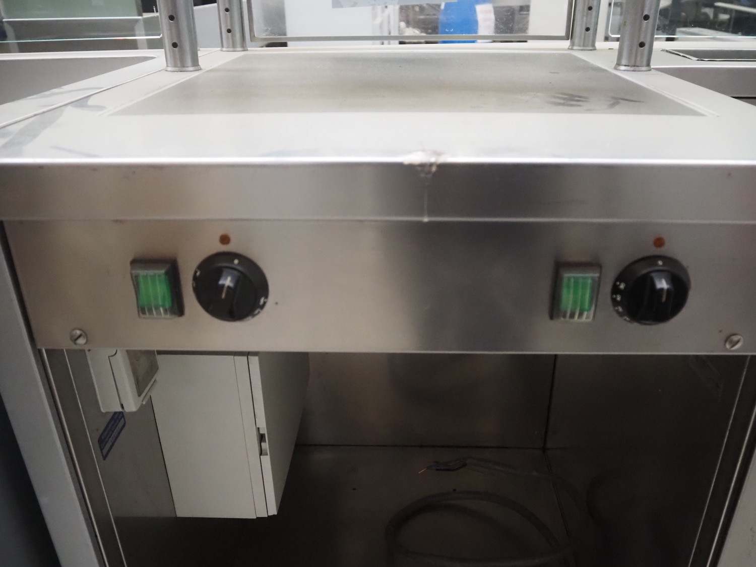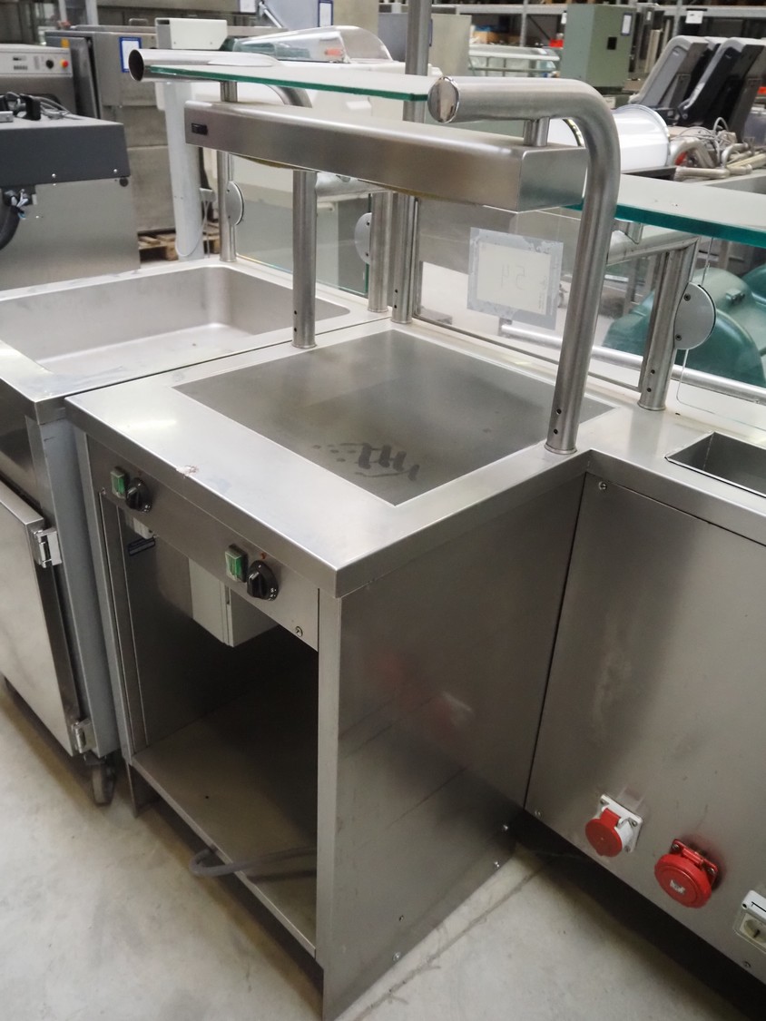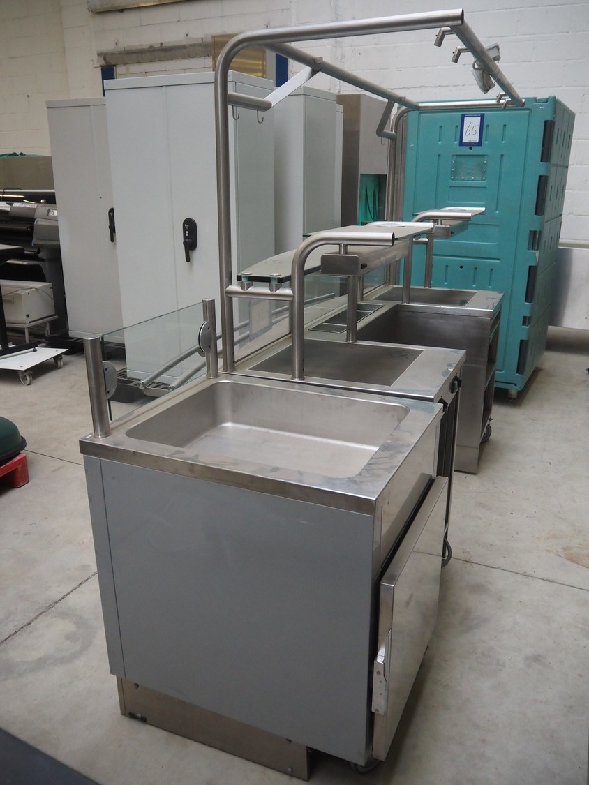 SSP SPA mobile serving counter with 2 warming plates and au bain marie, model: WORLD MARCHE, serial number: 51700001, 400 V, 50 Hz, dimensions: 2080 mm x 1080 mm x 1920 mm, dimensions au bain marie: 640 mm x 780 mm x 1150 mm.