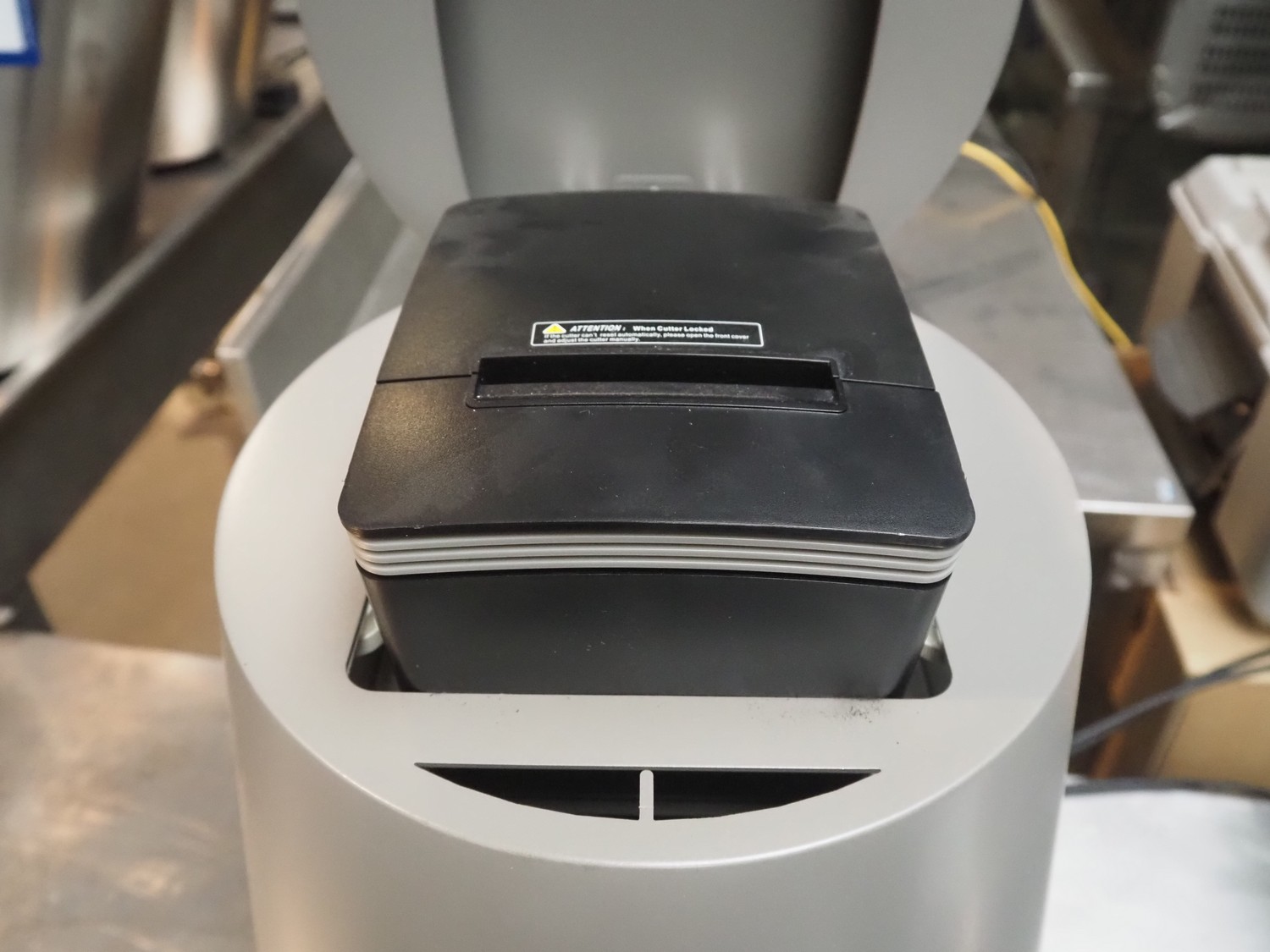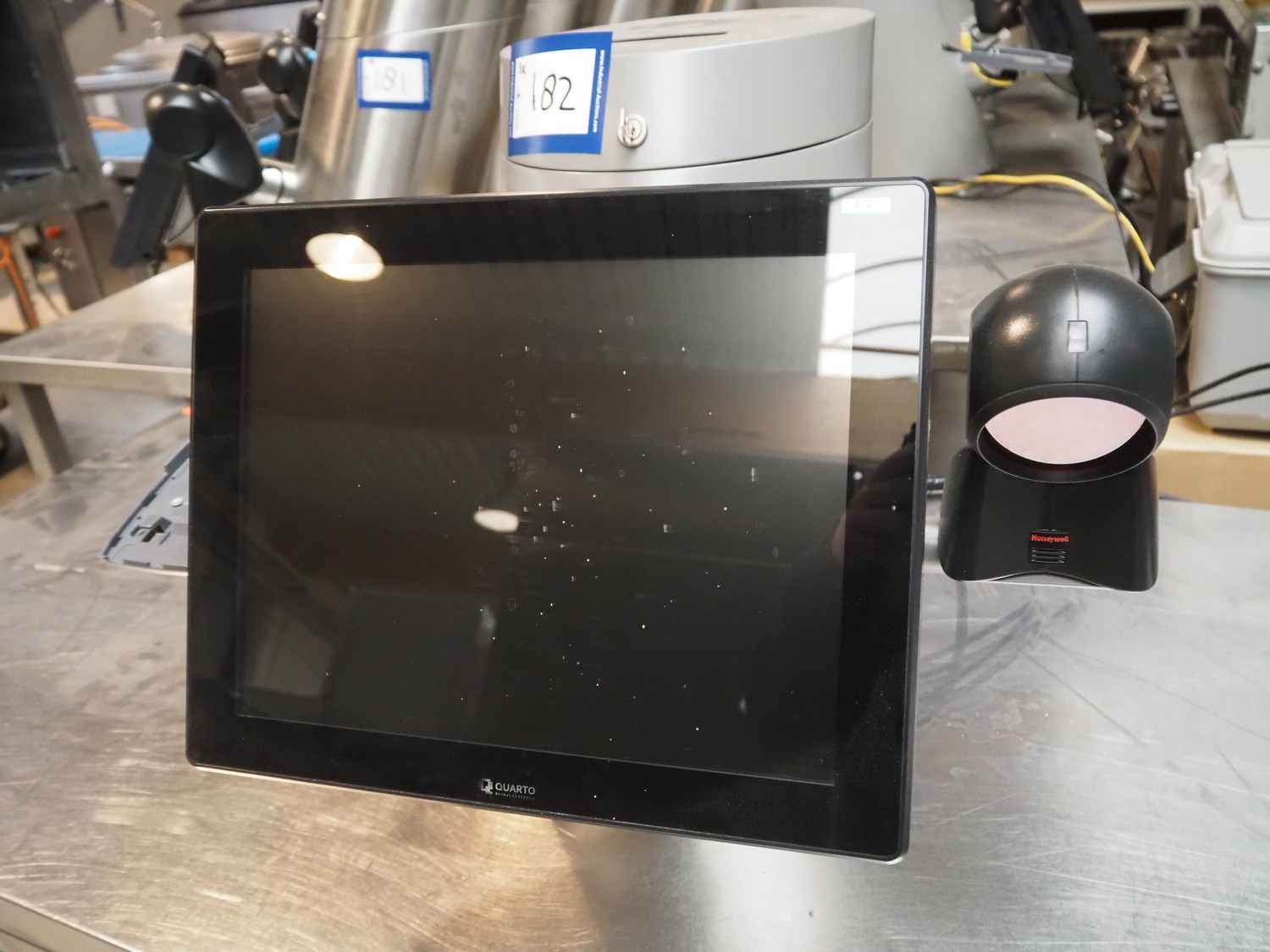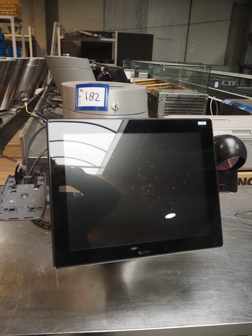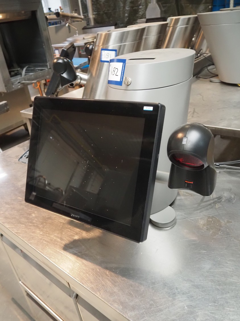 3 Quarto payment systems with receipt printer from which 6 in a frame, dimensions each: 600 mm x 600 mm x 440 mm. Table not included.