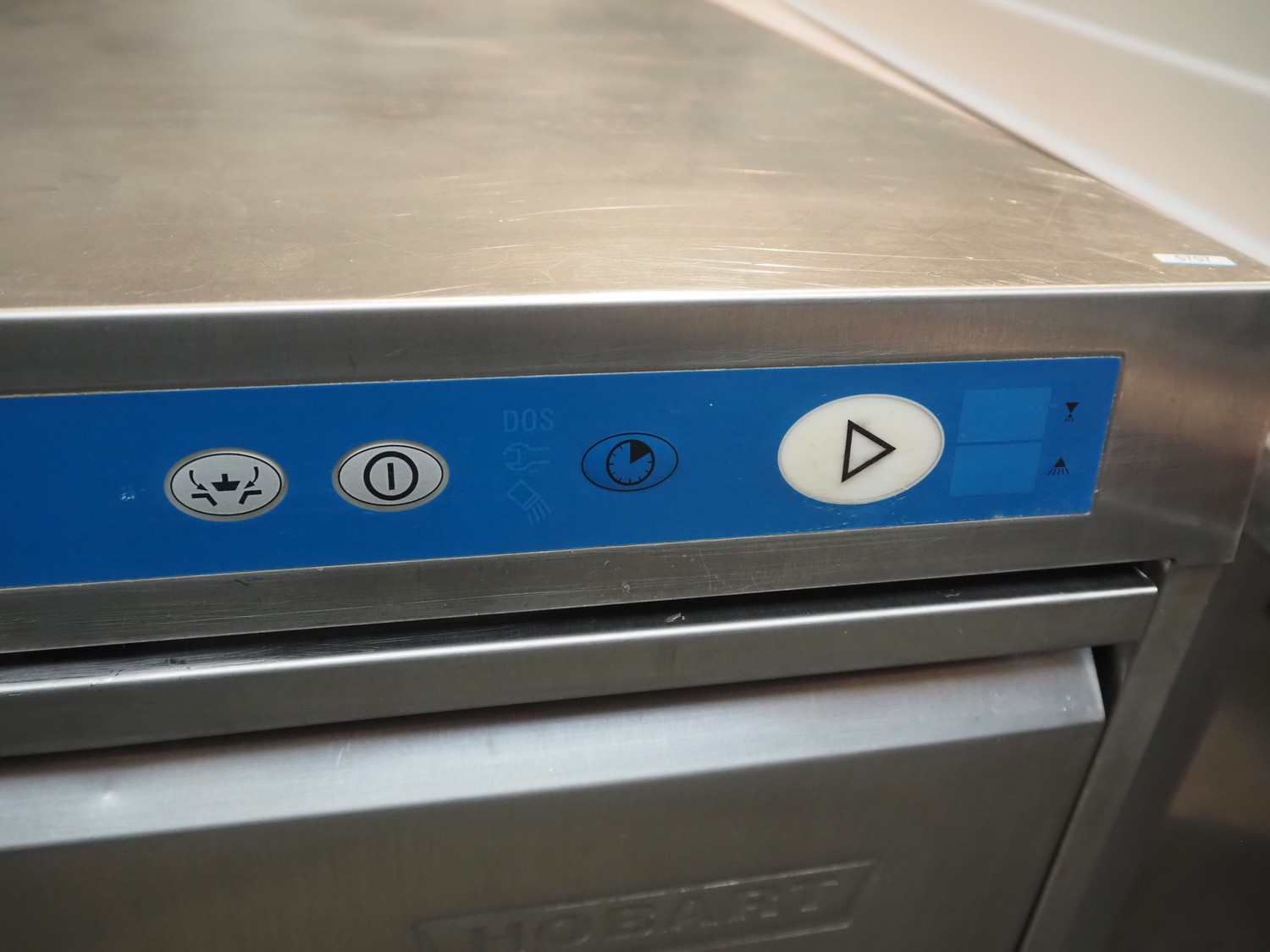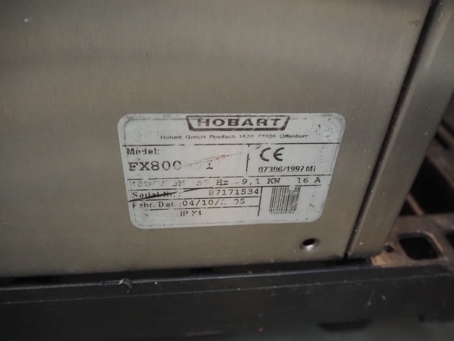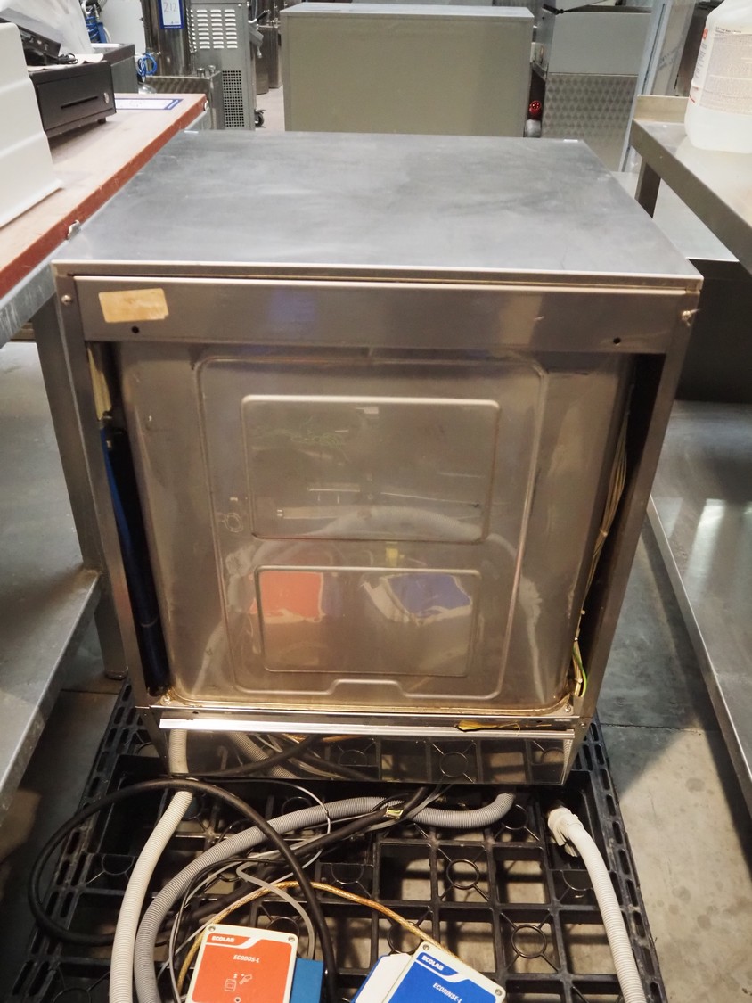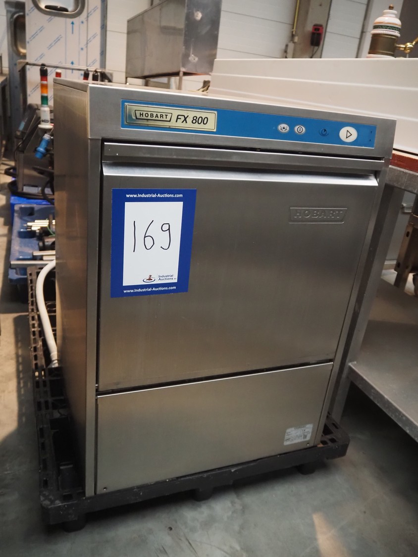 Hobart dishwasher, model: FX800, serial number: 87171534, year of construction: 2005, 400 V, 50 Hz, 16 A, 9.1 kW, dimensions inside: 490 mm x 490 mm, total dimensions: 600 mm x 600 mm x 820 mm.