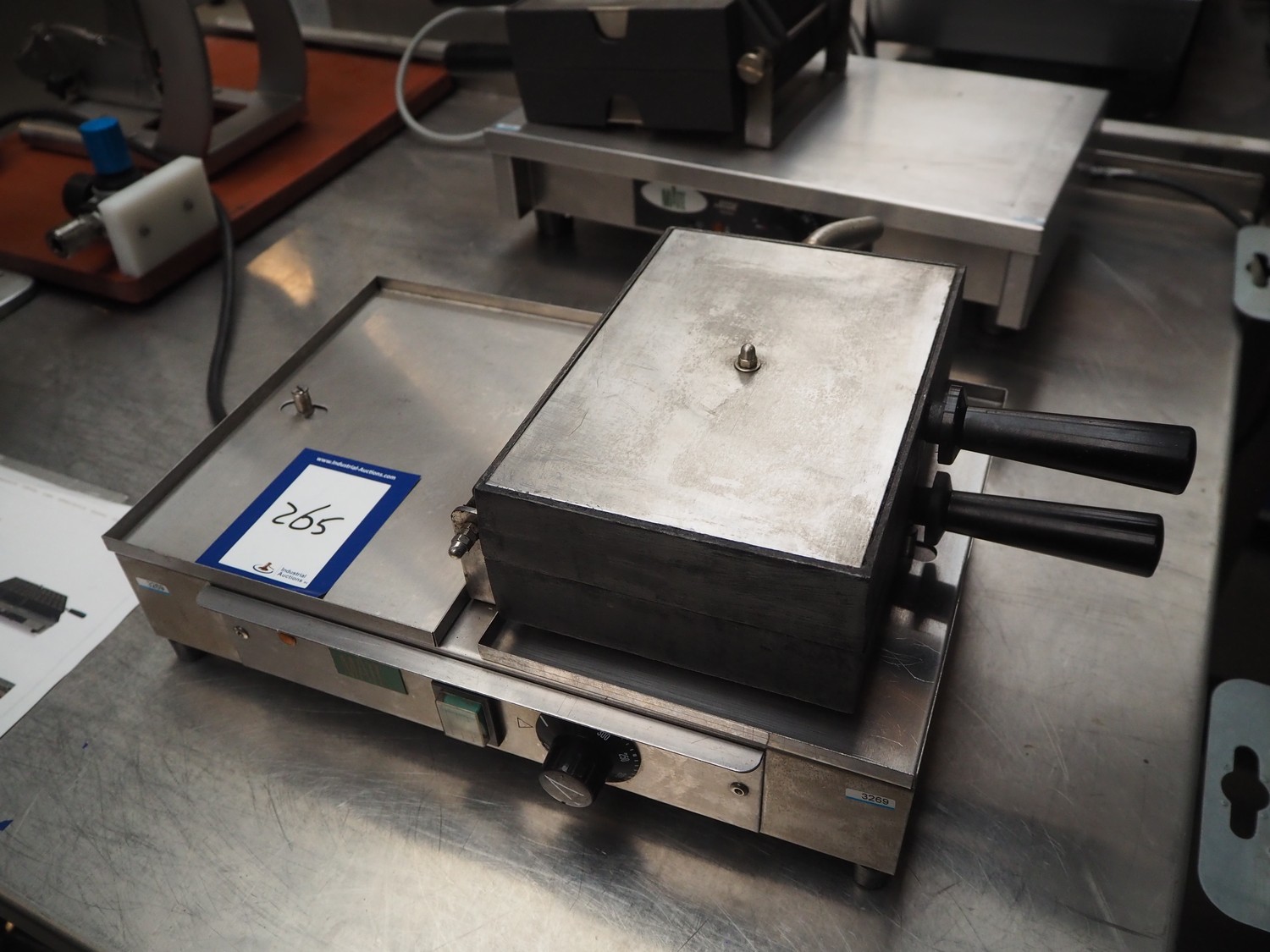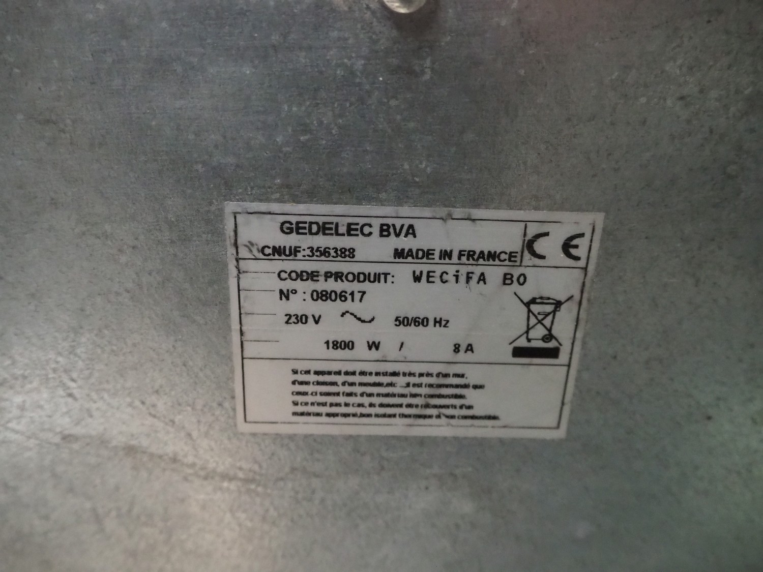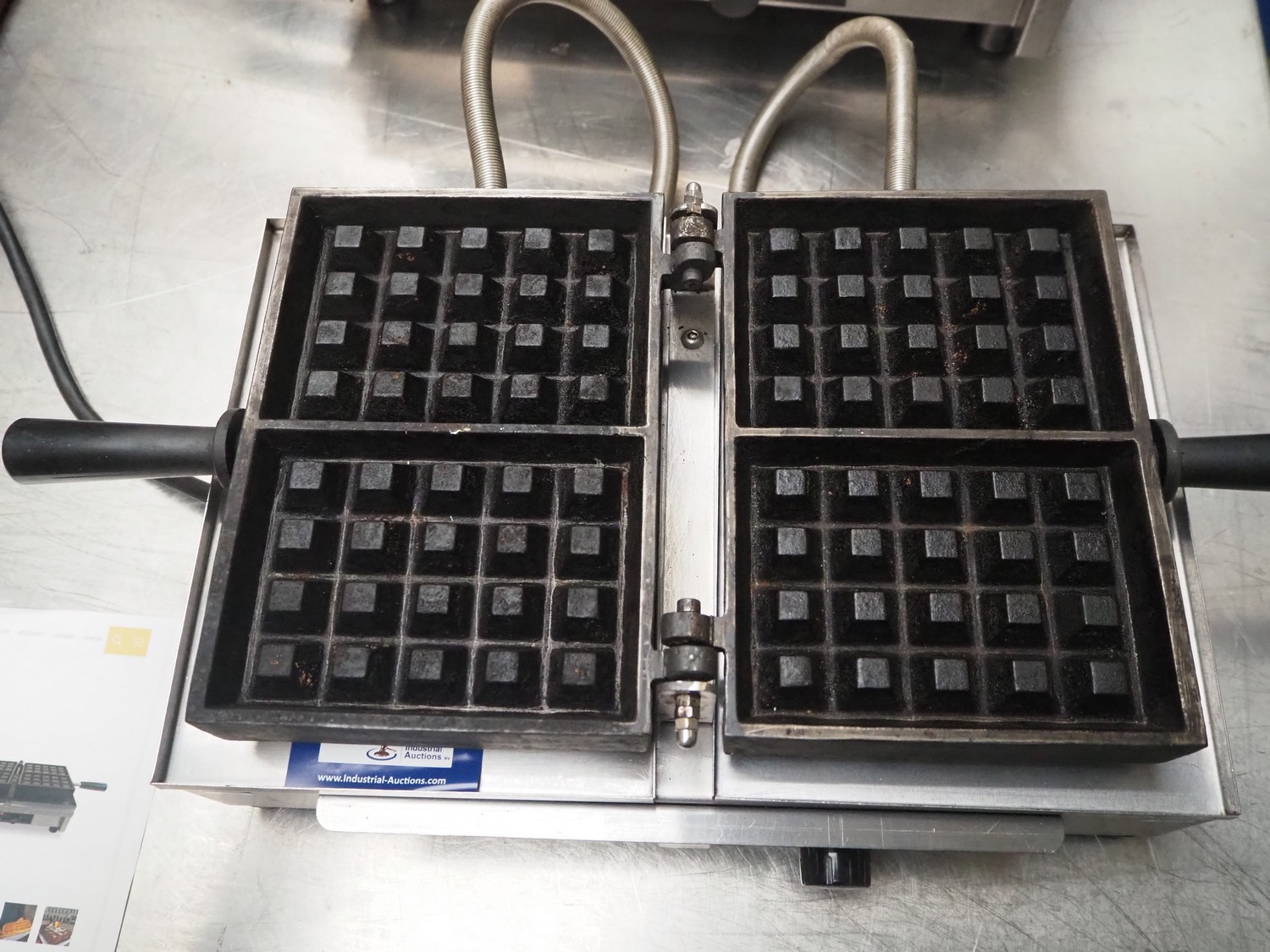 Gedelec BVA waffle maker, model: WECiFA B0, number: 080617, 230 V, 50/60 Hz, 8 A, 1800 W, dimensions waffle: (2x) 105 mm x 145 mm, total dimensions: 400 mm x 450 mm x 180 mm.