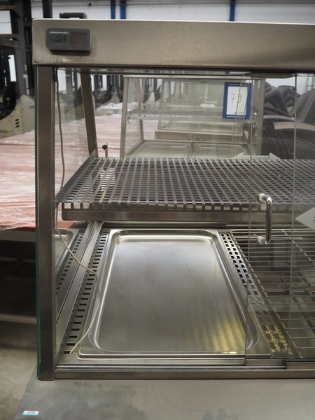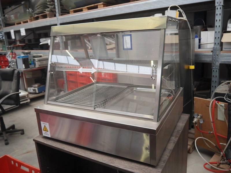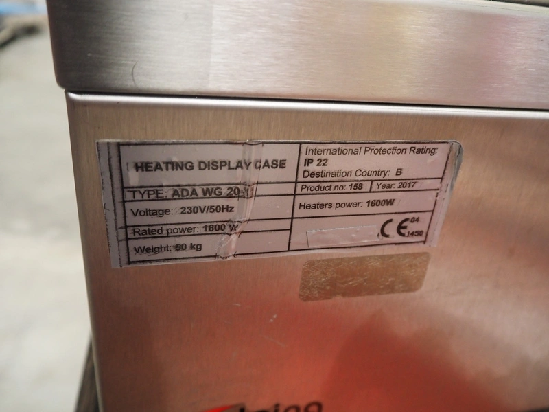 Alpina heated showcase, type: ADA WG 20-11, number: 158, year of construction: 2017, 230 V, 50 Hz, 1600 W, 50 kg, total dimensions: 800 mm x 750 mm x 1760 mm.