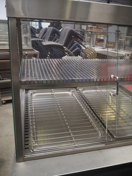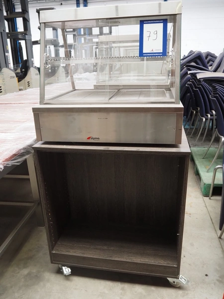 Alpina heated showcase, type: ADA WG 20-11, number: 144, year of construction: 2017, 230 V, 50 Hz, 1600 W, 50 kg, total dimensions: 800 mm x 750 mm x 1760 mm.