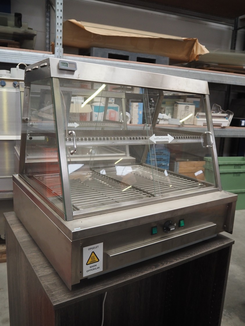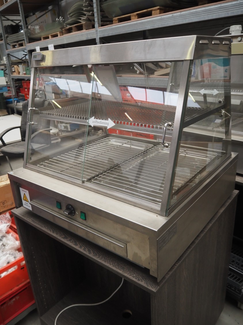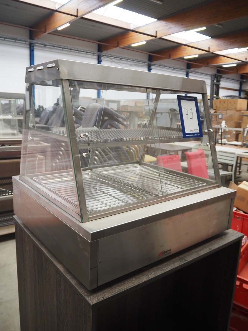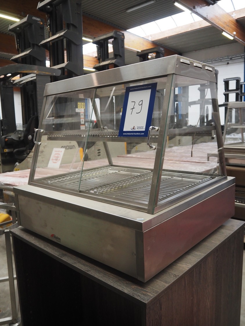 Alpina heated showcase, type: ADA WG 20-11, number: 144, year of construction: 2017, 230 V, 50 Hz, 1600 W, 50 kg, total dimensions: 800 mm x 750 mm x 1760 mm.