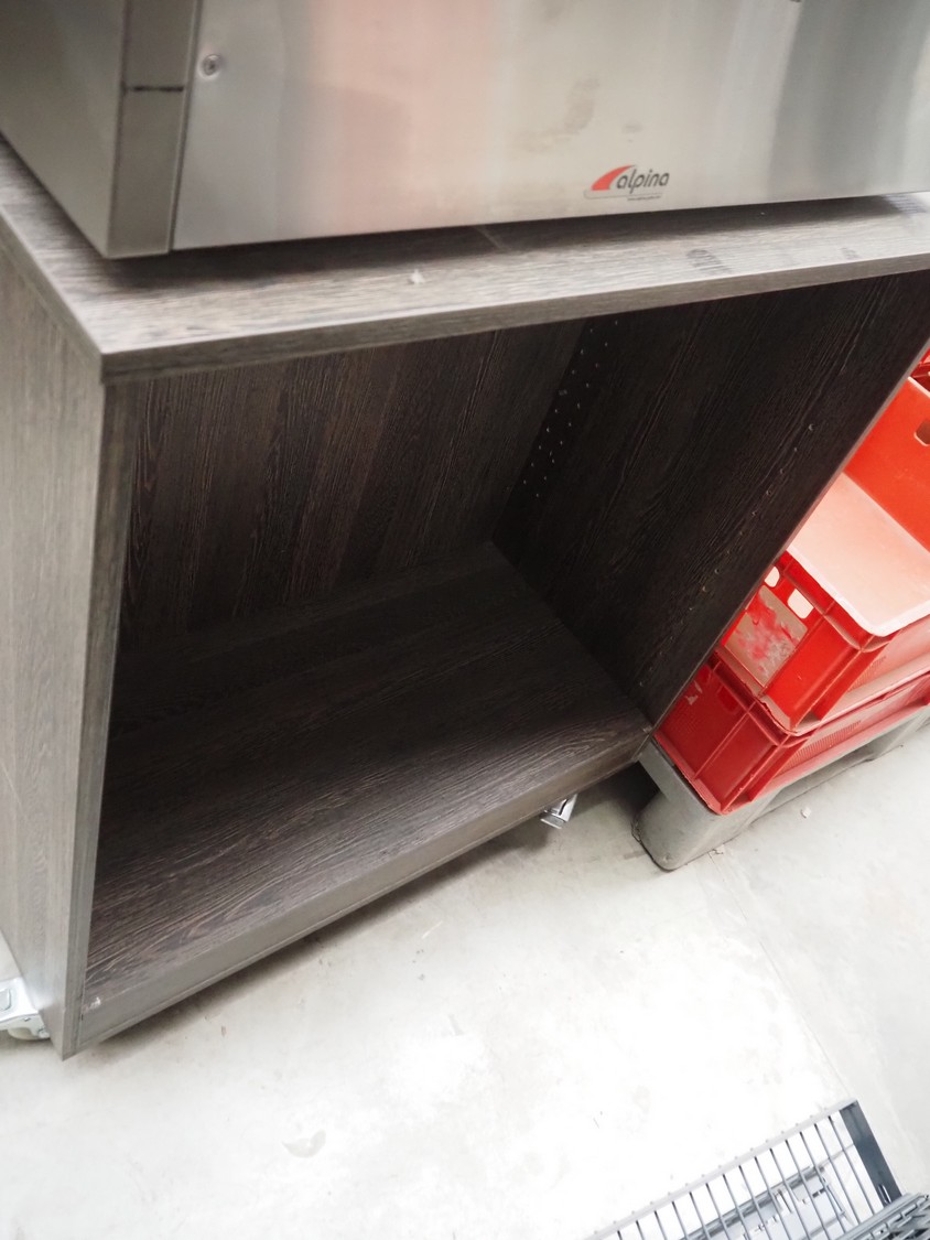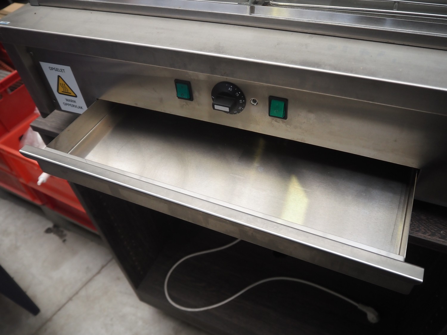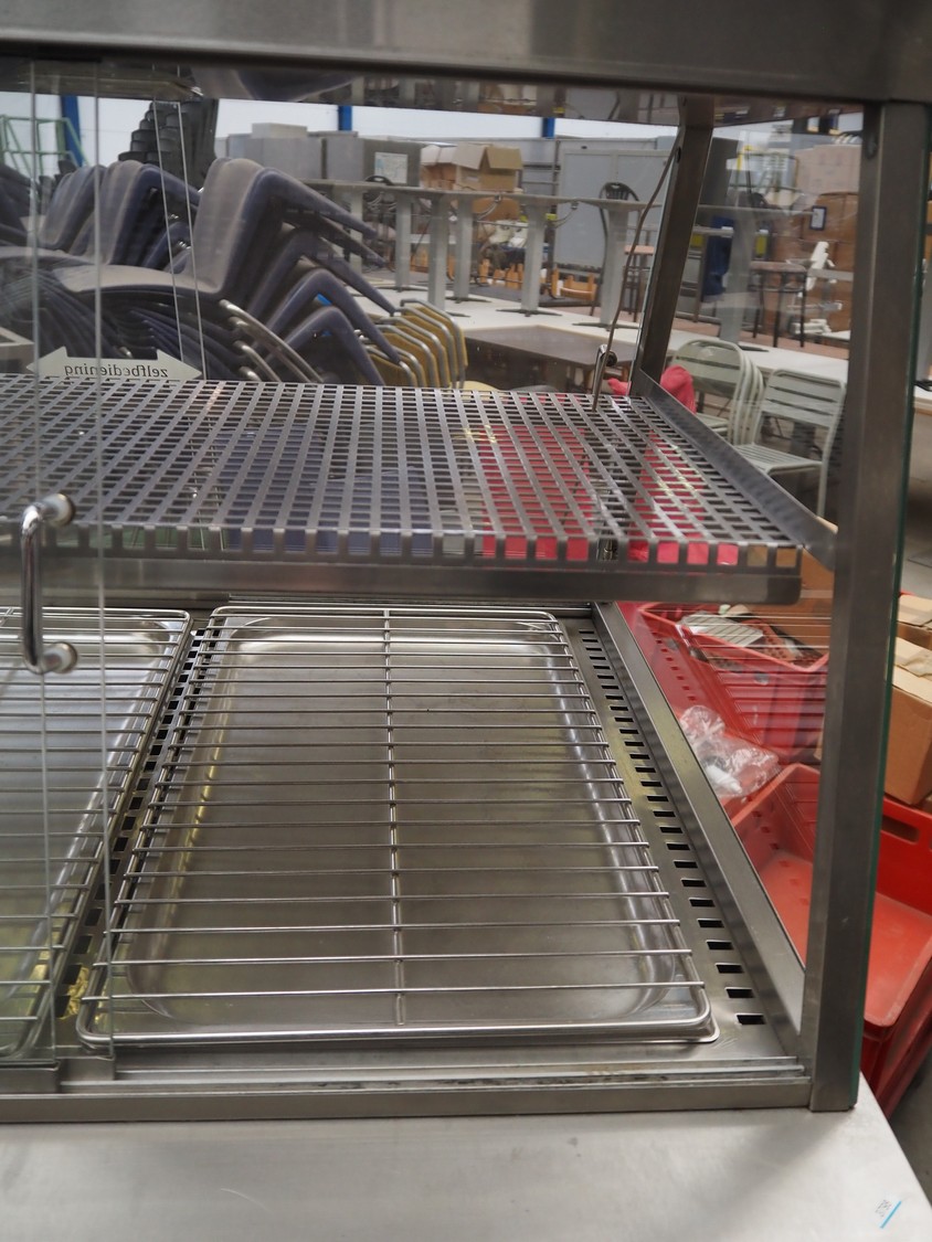 Alpina heated showcase, type: ADA WG 20-11, number: 144, year of construction: 2017, 230 V, 50 Hz, 1600 W, 50 kg, total dimensions: 800 mm x 750 mm x 1760 mm.