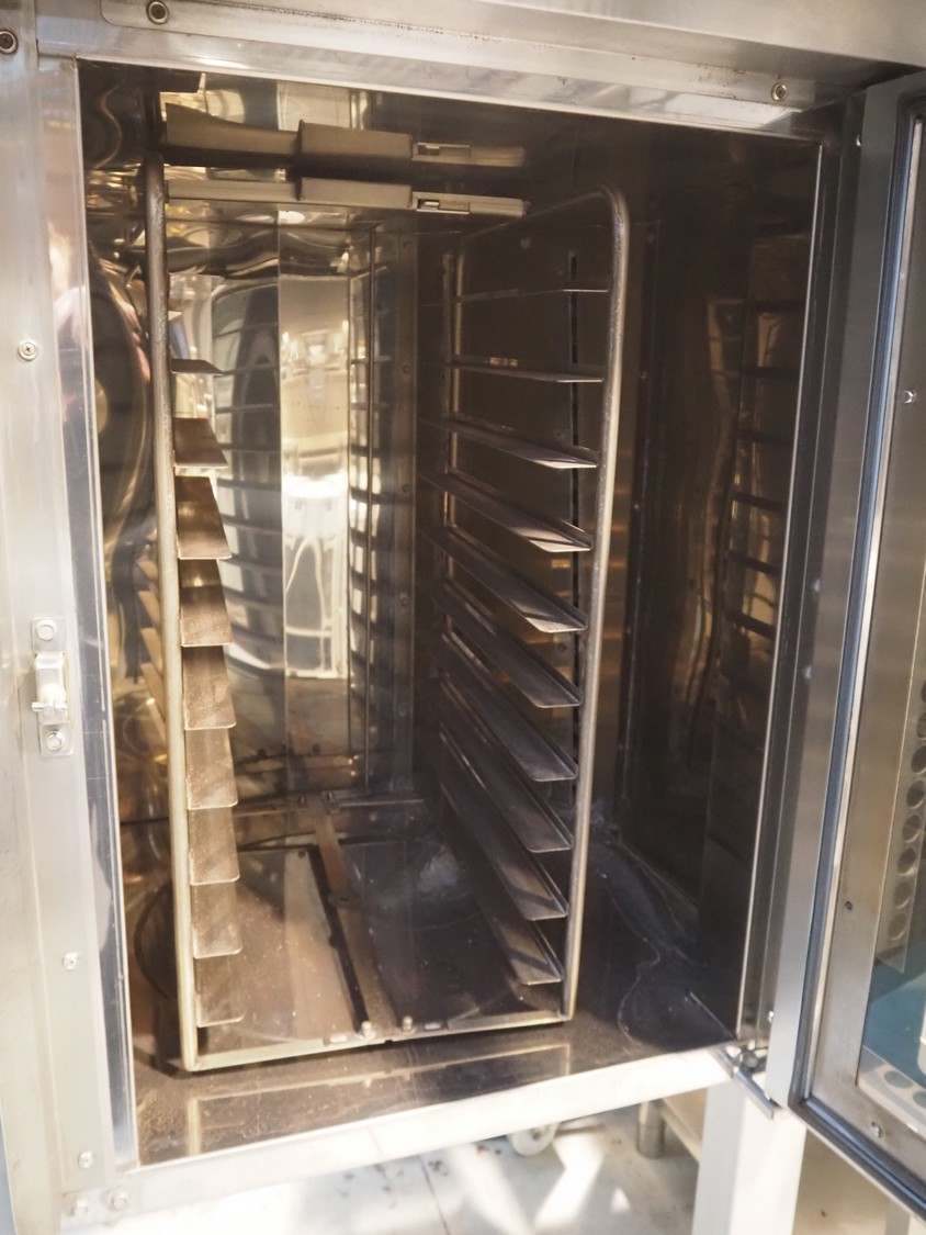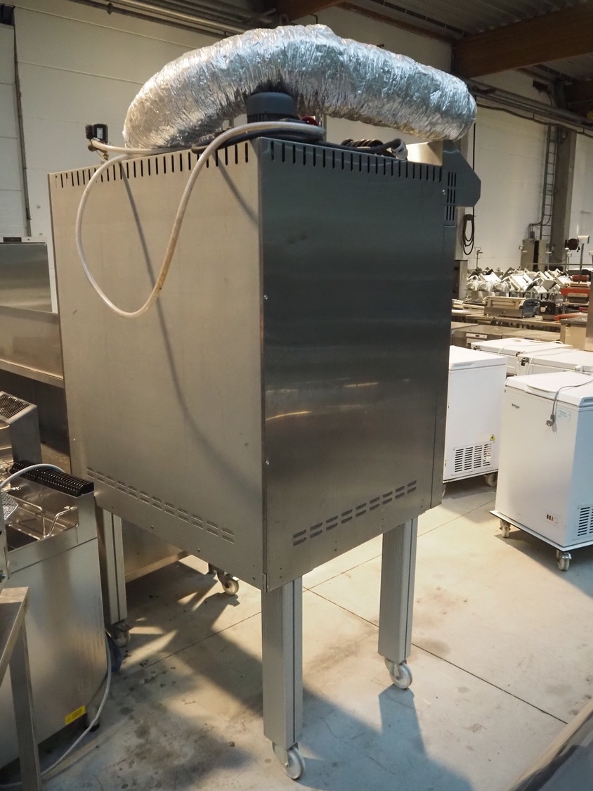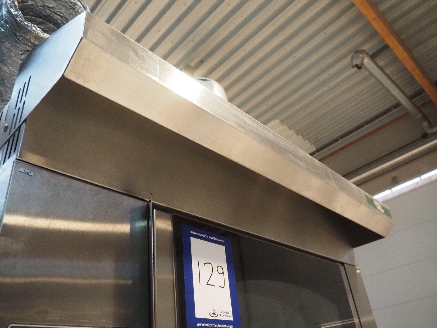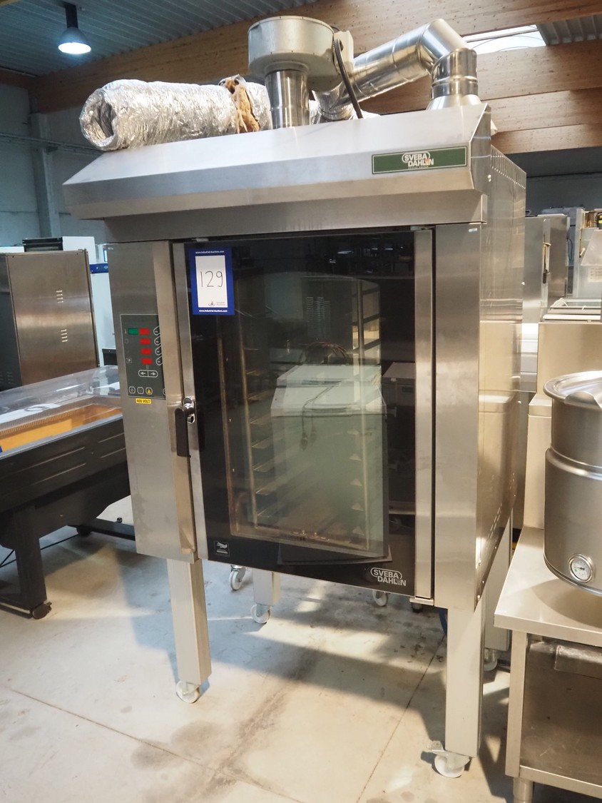 Sveba Dahlen AB mobile rotary oven with hood, model number: S400, serial number: M219995 /0924, 400 V, 3 Ph, 50 Hz, 23 kW, 10 floors, floor dimensions: (10x) 600 mm x 400 mm, total dimensions: 1180 mm x 1100 mm x 2100 mm.