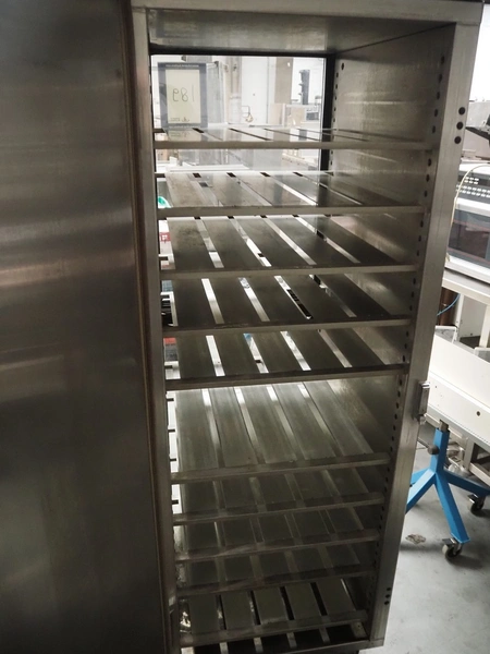 Thermodyne mobile slow cook and hold oven, model: 1900G, serial number: 14567, year of construction: 1/1/17, 230/440 V, 3 Ph, 50 Hz, 11 A, 10 floors, floor dimensions: 650 mm x 550 mm, total dimensions: 830 mm x 680 mm x 1960 mm.