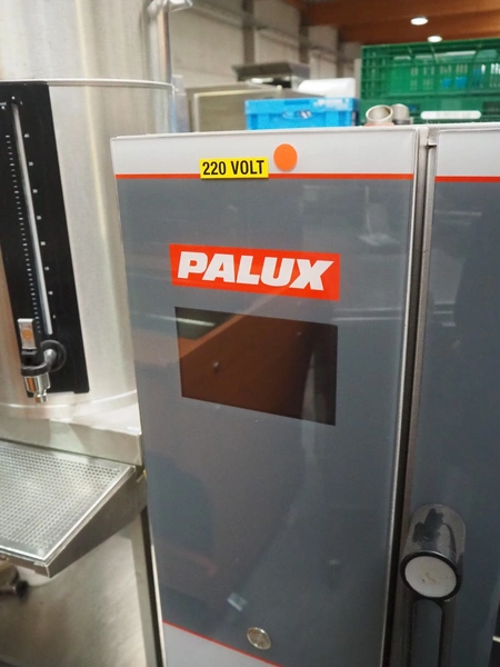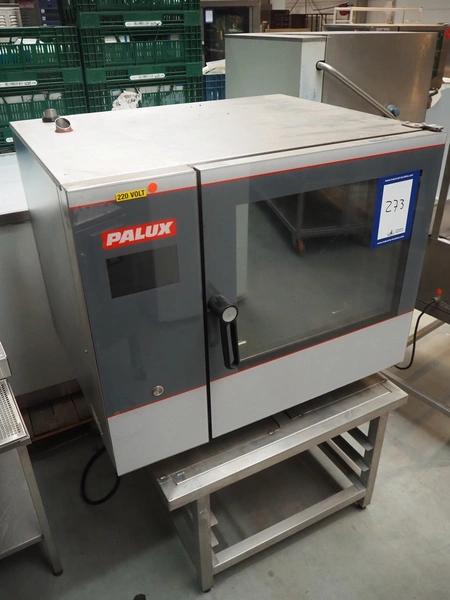 Palux combi steamer on s/s cabinet, 220 V, 7 floors, dimensions each floor: 495 mm x 560 mm, total dimensions: 980 mm x 850 mm x 1370 mm.