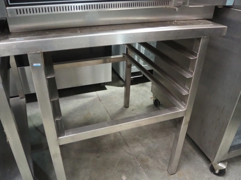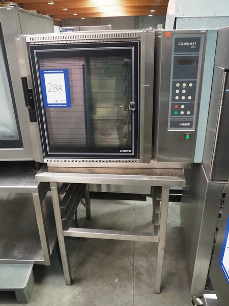 Leventi combi steamer on s/s table, 6 floors, floor dimensions: (6x) 550 mm x 410 mm, total dimensions: 970 mm x 800 mm x 1670 mm.