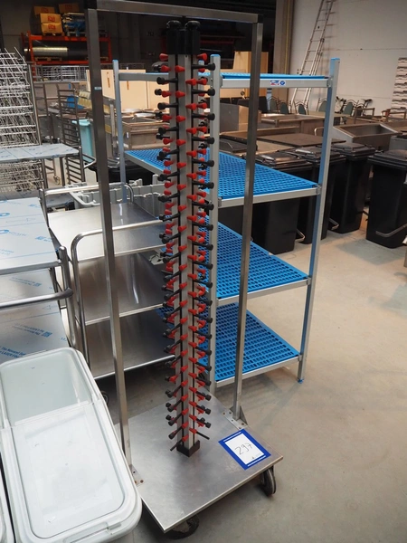 Mobile plate rack, dimensions: 600 mm x 600 mm x 1840 mm.