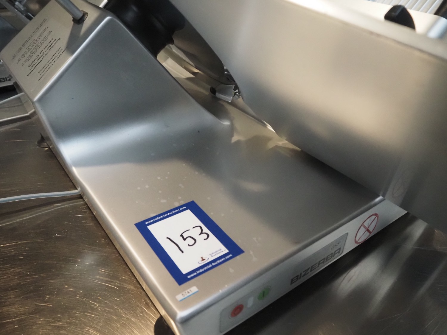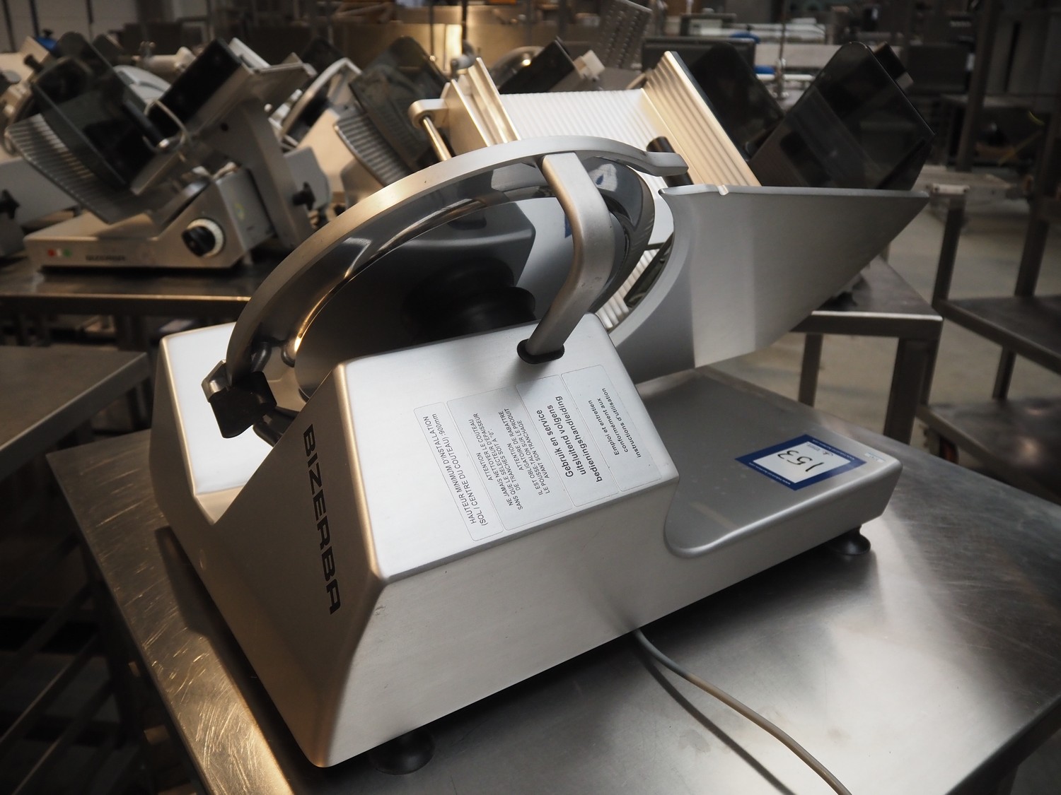 Bizerba slicer, model: GSP H, number: 11149219, year of construction: 2015, 230 V, 1 Ph, 50 Hz, 1.79 A, 0.36 kW, dimensions: 550 mm x 700 mm x 450 mm. Including knife sharpener.