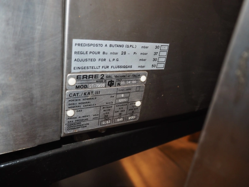 Erre 2 srl stove, model: CT-7200, number: 05 04 88, dimensions: 800 mm x 700 mm x 980 mm.