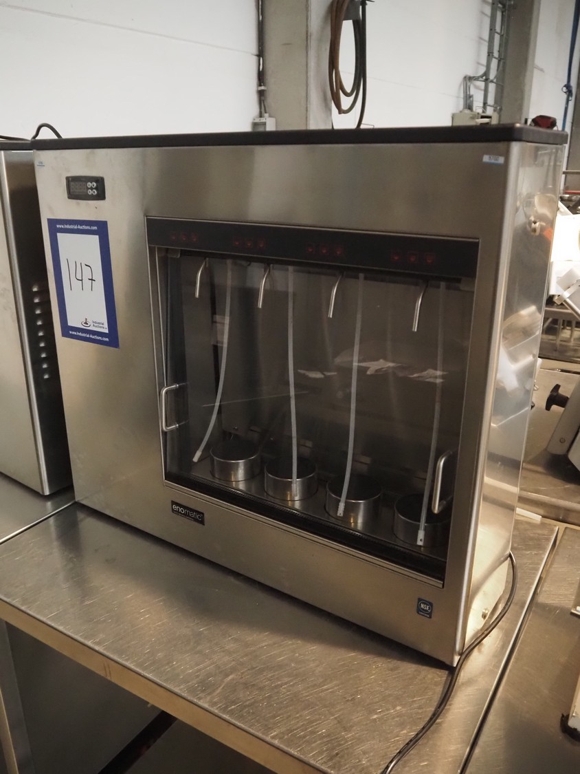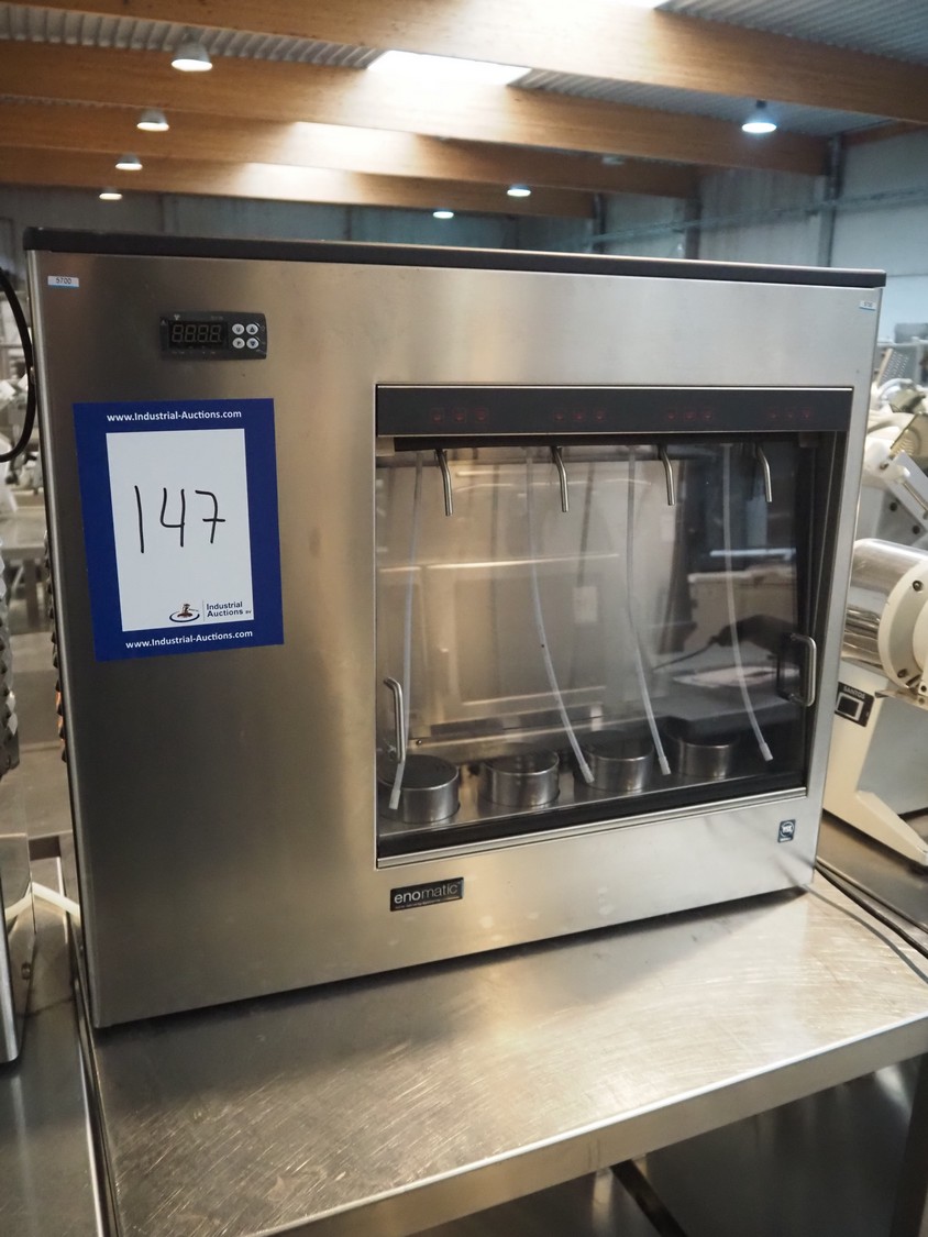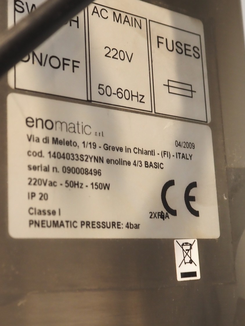 Enomatic 4‑bottle wine dispenser climate cabinet, serial number: 090008496, year of construction: 04/2009, 220 Vac, 50 Hz, 150 W, dimensions: 750 mm x 250 mm x 650 mm.