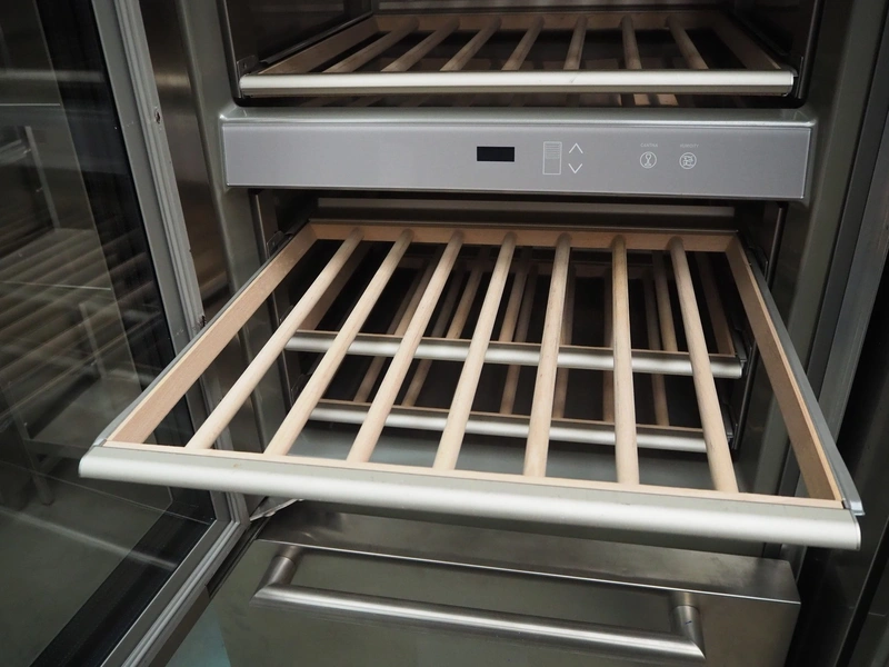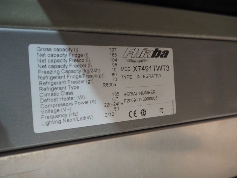 FhiaBa / Boretti wine climate cabinet, model: X7491TWT3, serial number: F20091128000003, 220/240 V, 50 Hz, 0.7 A, 105 W, refrigerant: R600a, 9 floors, floor dimensions: (9x) 540 mm x 545 mm x 80 mm, total dimensions: 760 mm x 750 mm x 2100 mm.