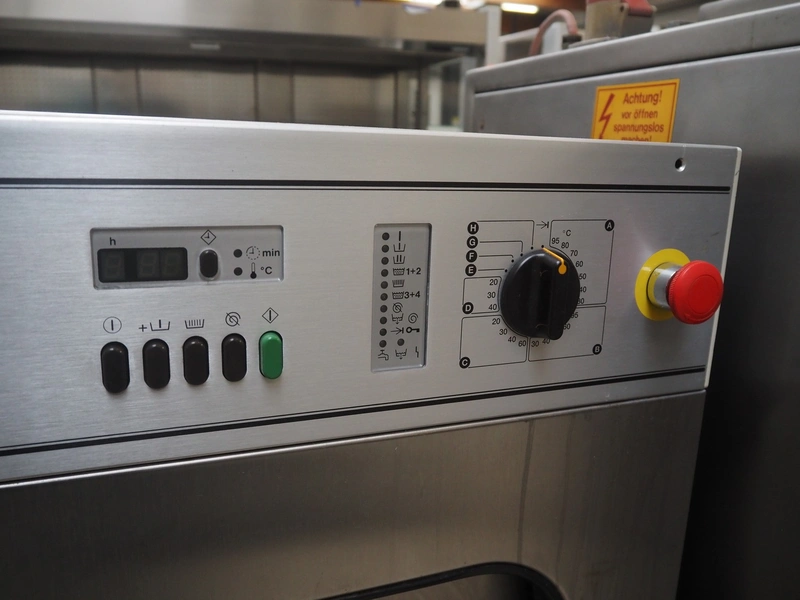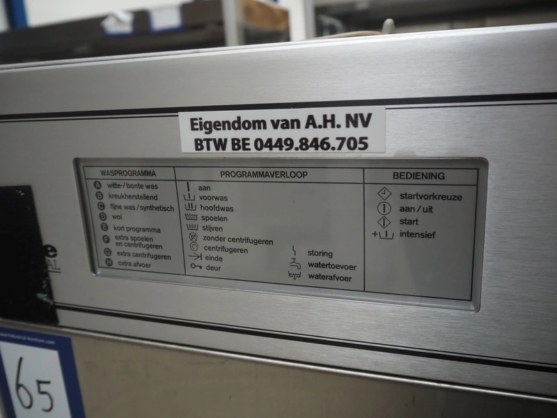 Miele washing machine, type: WS 5080, serial number: 25258481, year of construction: 1993, 220/400 V, 3 Ph, 50 Hz, 16/25 A, 9.35 kW, dimensions: 800 mm x 750 mm x 1150 mm.