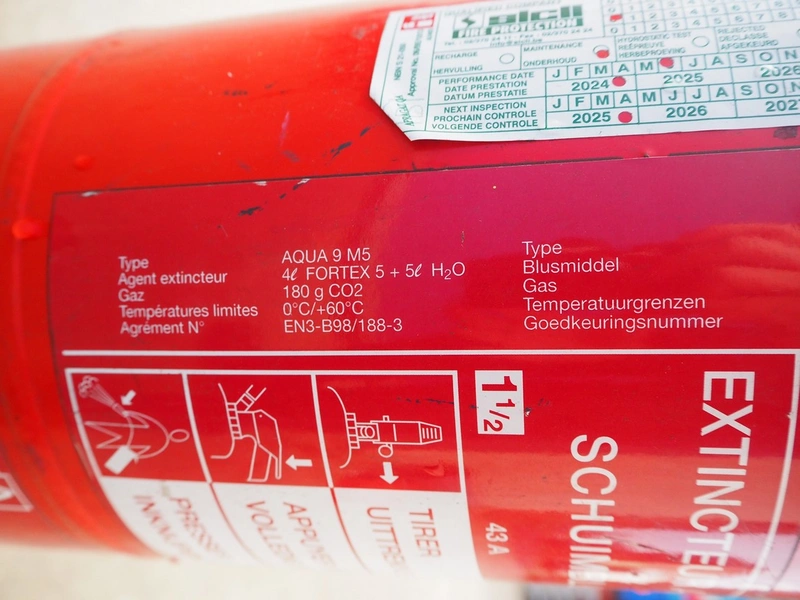 10 Sicli fire extinguishers, foam extinguishers, type: AQUA 9 M5, volume 9 liter, total dimensions (10x): 230 mm x 200 mm x 750 mm.