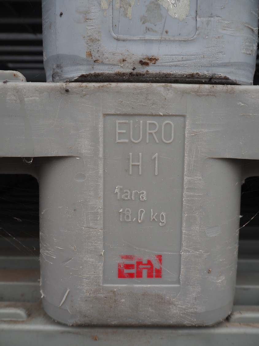 11 plastic EURO H1-pallets, dimensions: (11x) 1200 mm x 800 mm x 150 mm.