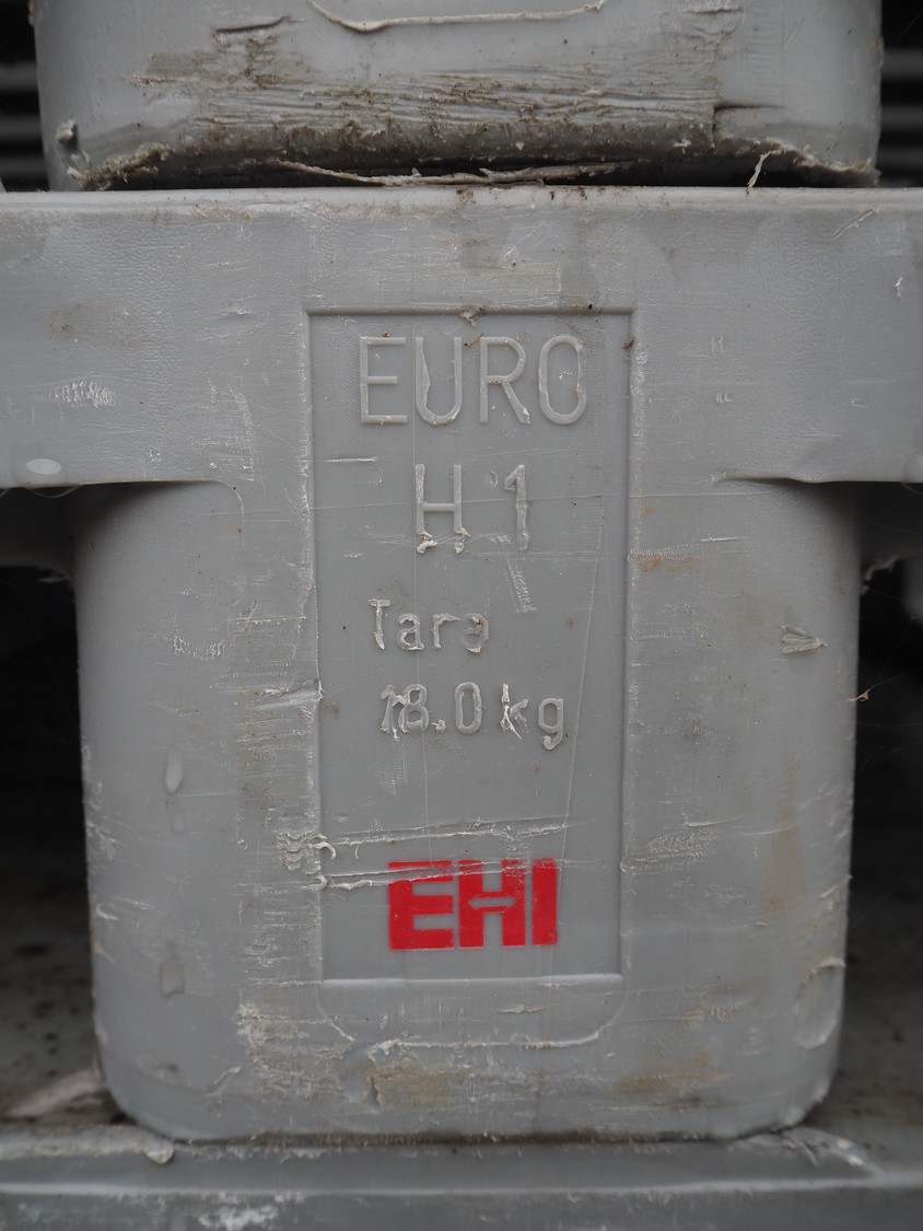 11 plastic Euro H1-pallets, dimensions: (11x) 1200 mm x 800 mm x 150 mm.