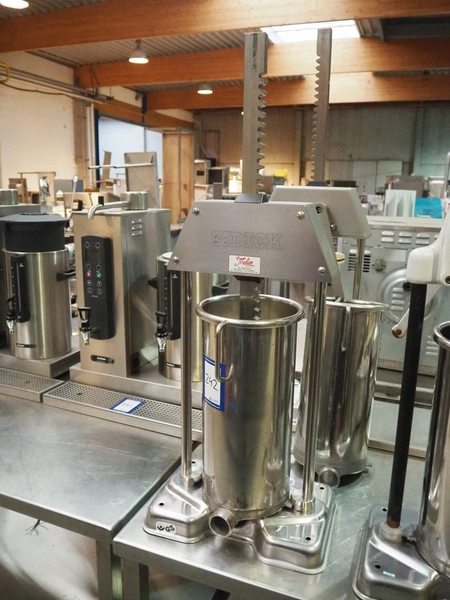 Dick manual piston filler, dimensions inside: Ø 190 mm x 420 mm, total dimensions: 400 mm x 260 mm x 1150 mm.