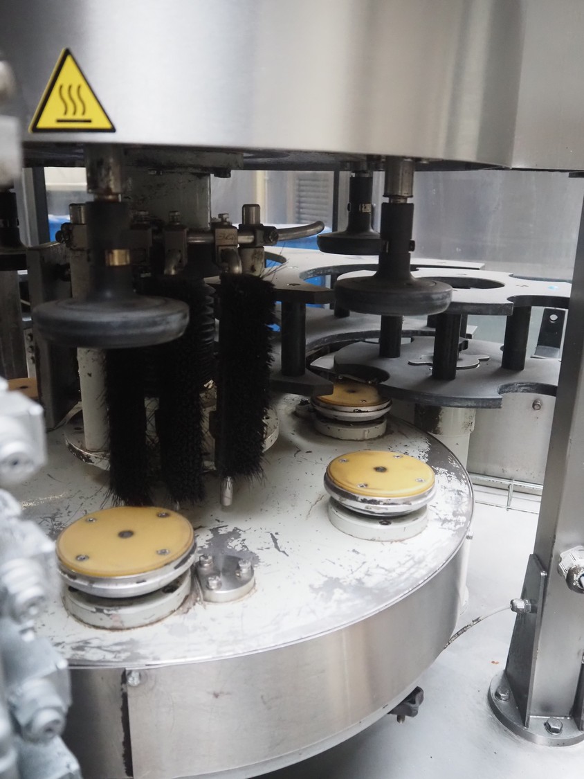 Sacmi Labelling labelling machine for cans, model: RHM5046T, type: SR S1F, serial number: 00421, year of construction: 2006, 380 V, 50 Hz, 16 A, 8 kW, weight: 2500 kg, cans: Ø 100 mm, total dimensions: 2450 mm x 2100 mm x 2180 mm. Missing belt. Without rollies.