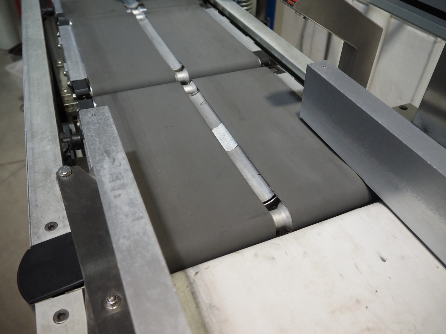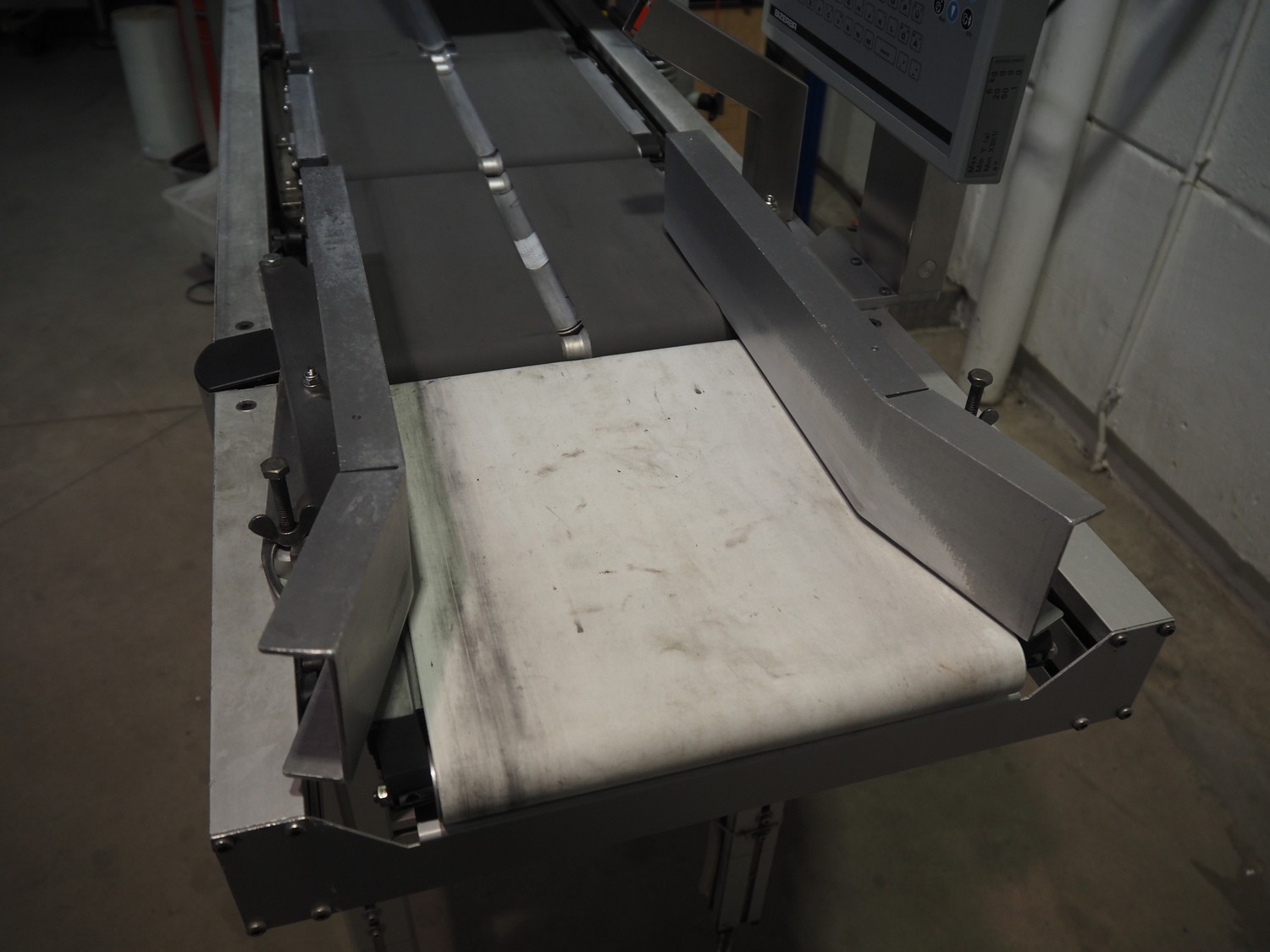Bizerba checkweigher with labeller, model: GLM-E, number: 10743651, plastic belt, belt width: 296 mm and (2x) 135 mm, max: 6 kg, min: 20 gram, e=1 gram, total dimensions: 1630 mm x 650 mm x 1850 mm.