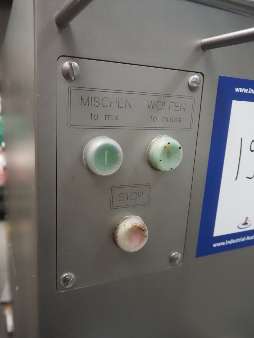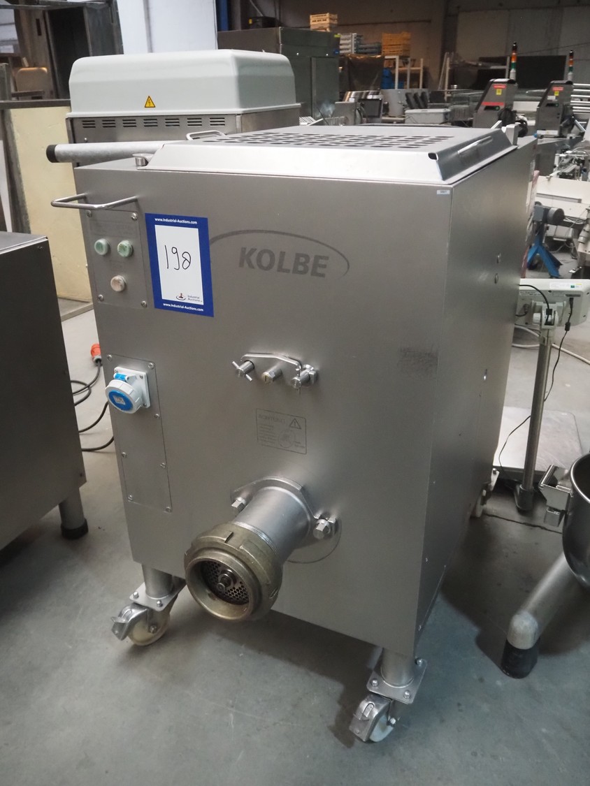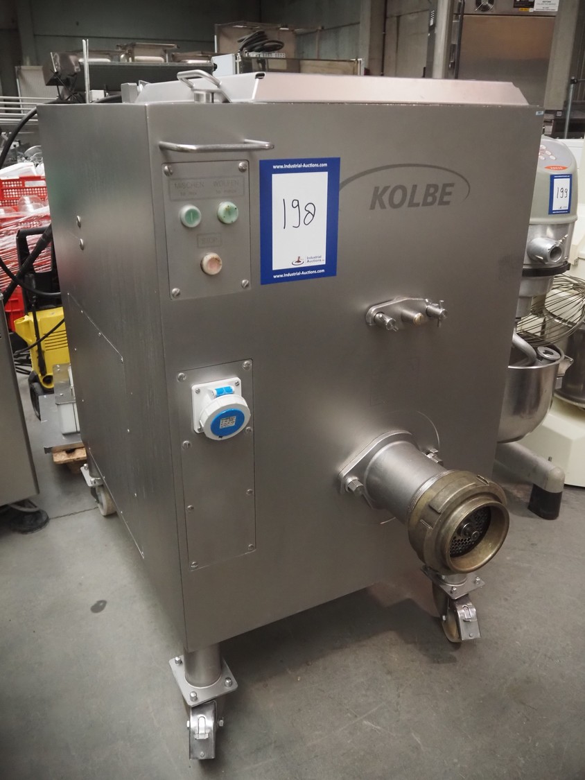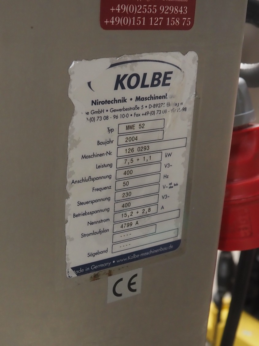 Kolbe mixer-grinder, type: MWE 52, machine number: 126 0293, year of construction: 2004, 400 V, 50 Hz, 15.2+2.8 A, 7.5+1.1 kW, diameter plate: 130 mm, total dimensions: 1370 mm x 800 mm x 1330 mm.