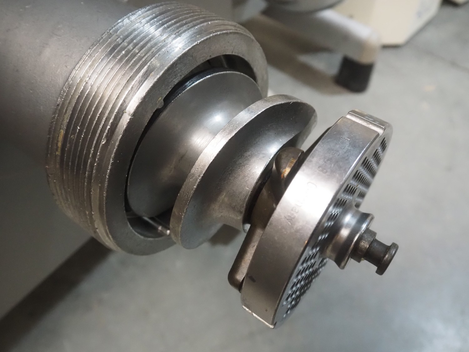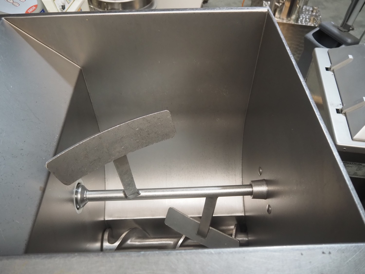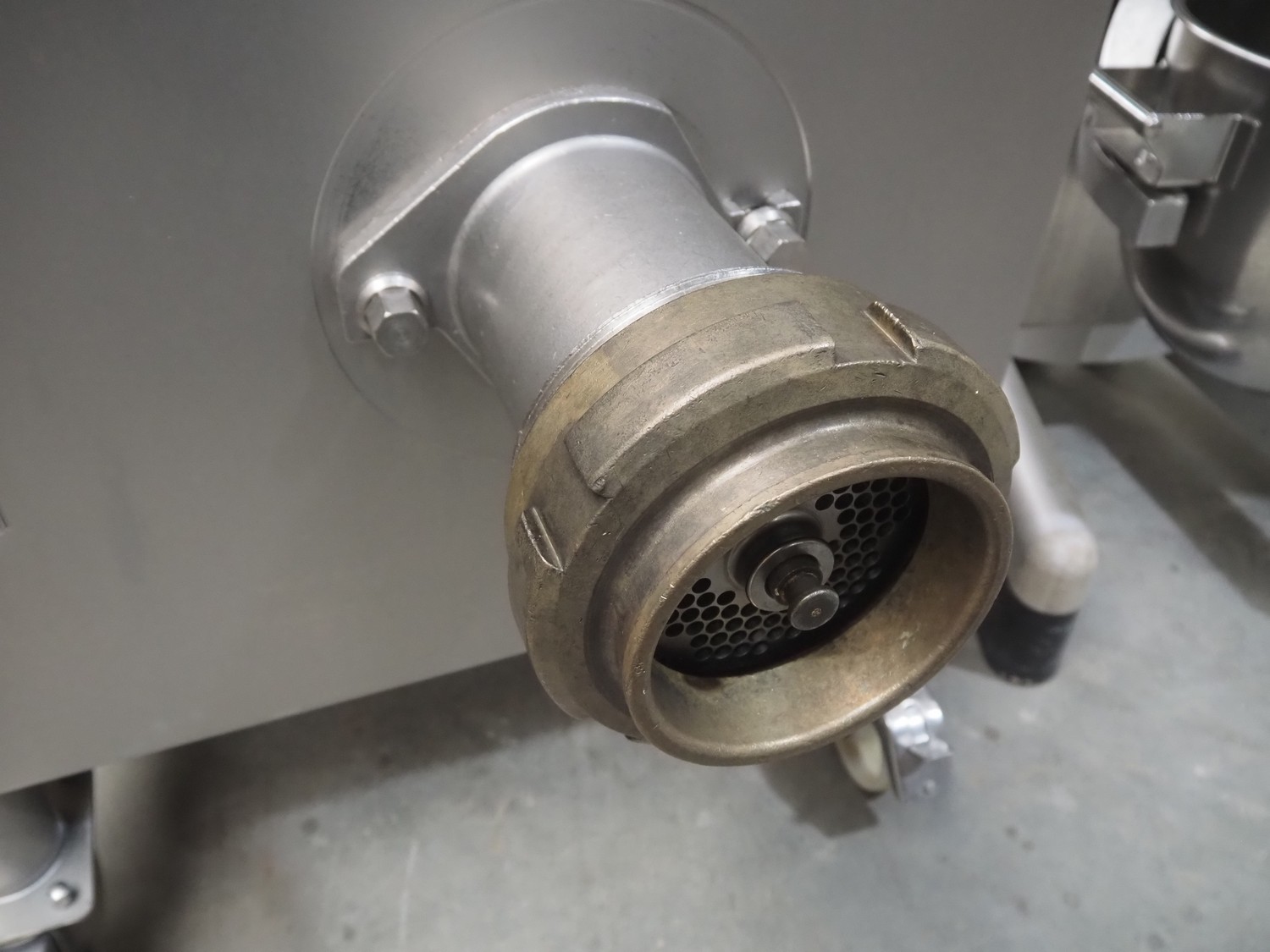 Kolbe mixer-grinder, type: MWE 52, machine number: 126 0293, year of construction: 2004, 400 V, 50 Hz, 15.2+2.8 A, 7.5+1.1 kW, diameter plate: 130 mm, total dimensions: 1370 mm x 800 mm x 1330 mm.