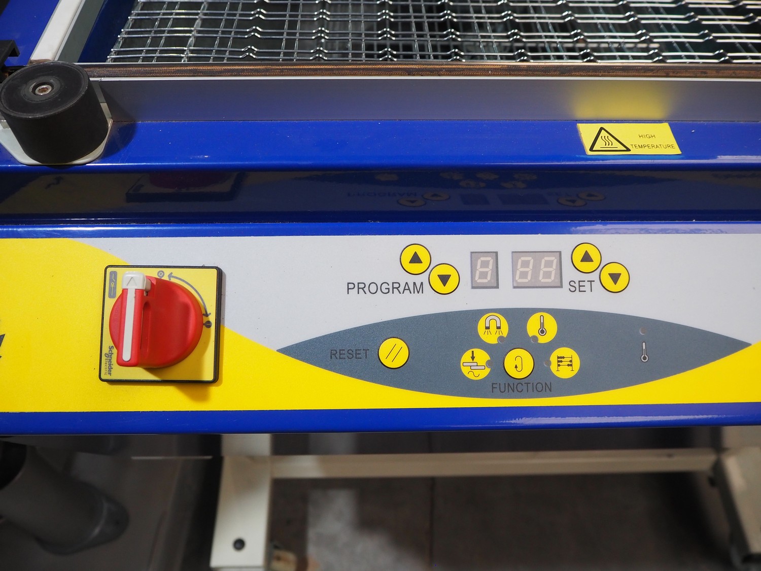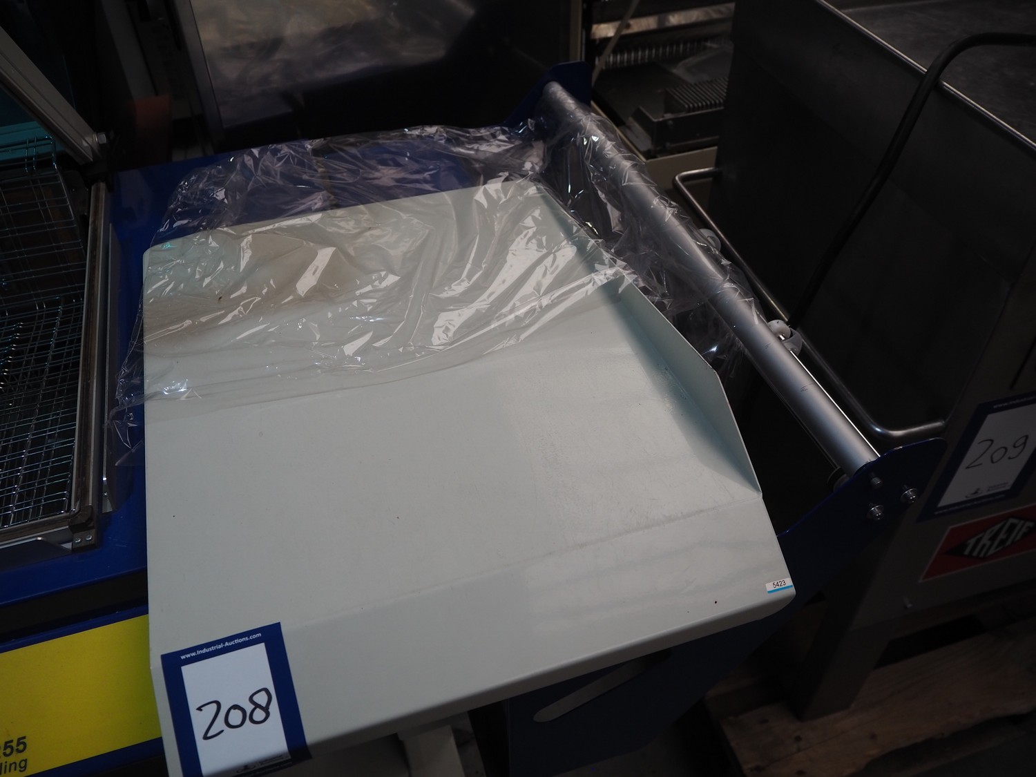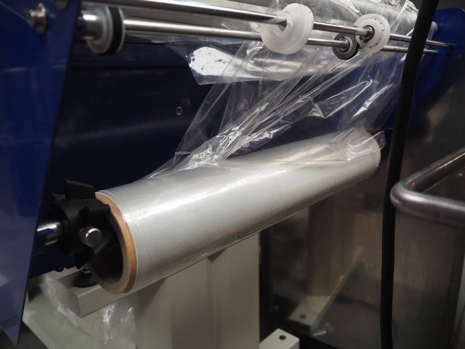 Italdibipack S.p.A. mobile heat-shrinking L-sealer system, model: Dibipack 4255EVX restyling, serial number: 022634, year of construction 2021, 230 V, 50/60 Hz, 3.5 kW, weight: 90 Kg, film width: 515 mm, seal length: 570 mm x 440 mm, total dimensions: 800 mm x 1300 mm x 1500 mm. Including 2 extra film rolls.