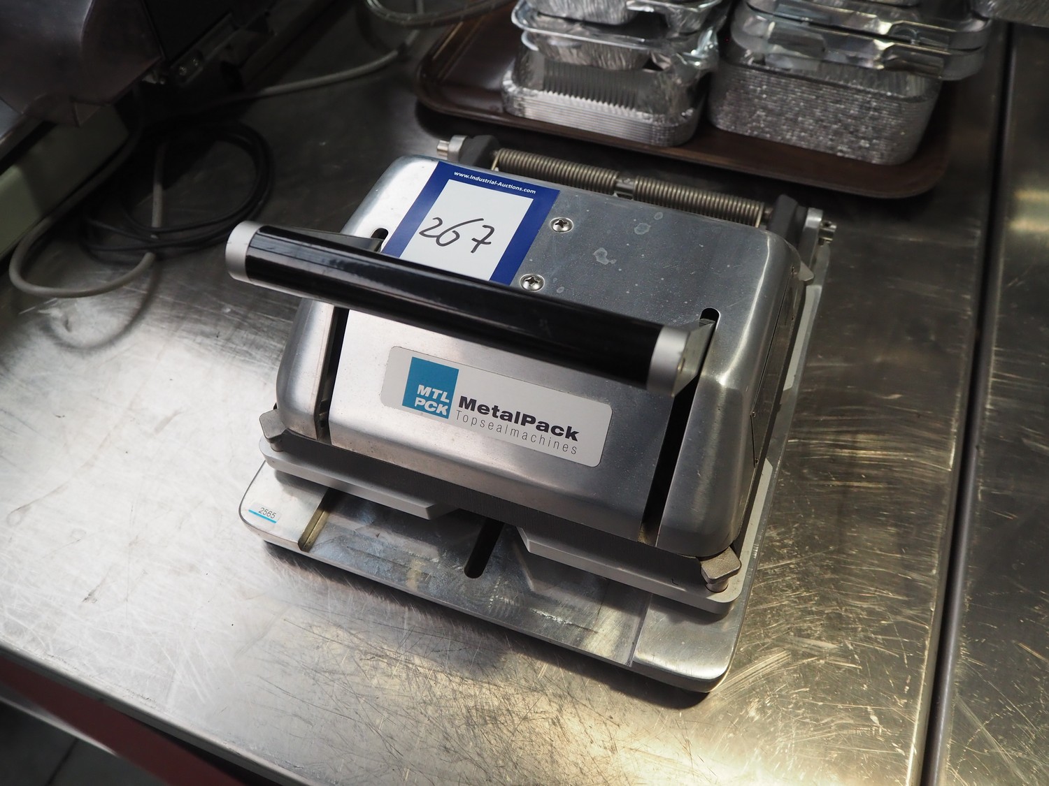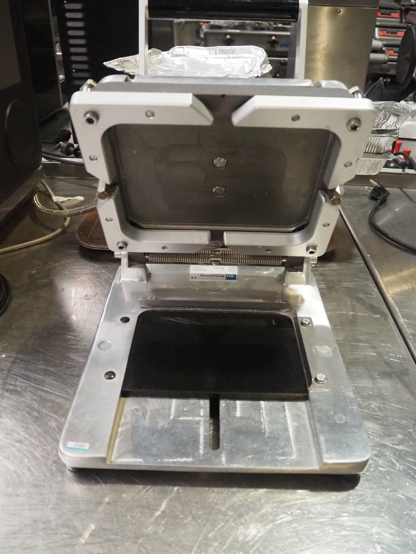 MetalTech lid closer for metal trays, type: 227, serial number: 8207, year of construction: 2016, dye: 230 mm x 175 mm, total dimensions: 300 mm x 350 mm x 390 mm.