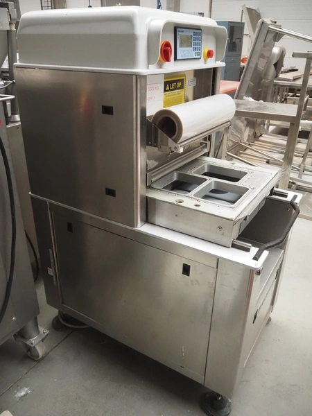Multivac tray sealer, type: Galaxy, model: TS 355, machine number: 996, year of construction: 2000, 380 V, 3 Ph, 50 Hz, 2.3 A, 8.75 kW, film width: 500 mm, dye: (3x) 211 mm x 163 mm, with Busch vacuum pump, type: RA 0063 E 5Z1, 63 m³/h, total dimensions: 730 mm x 1250 mm x 1540 mm.