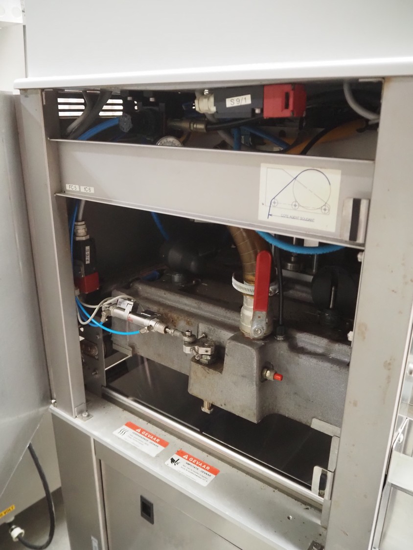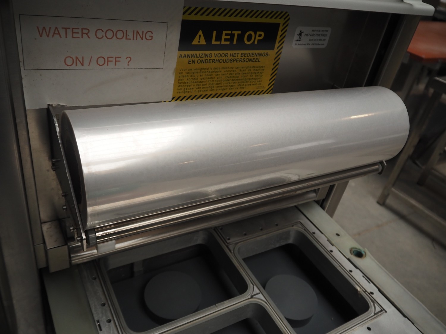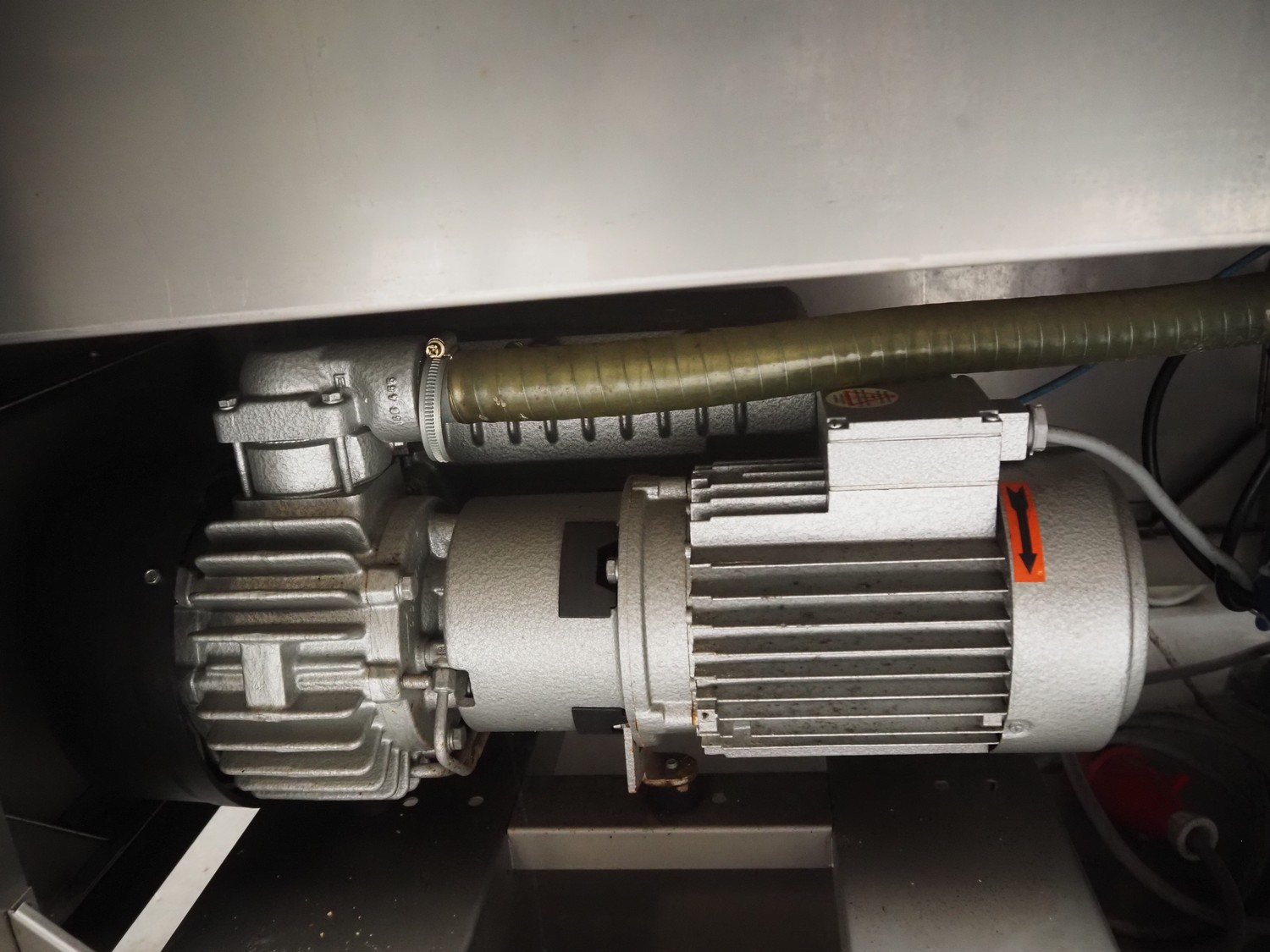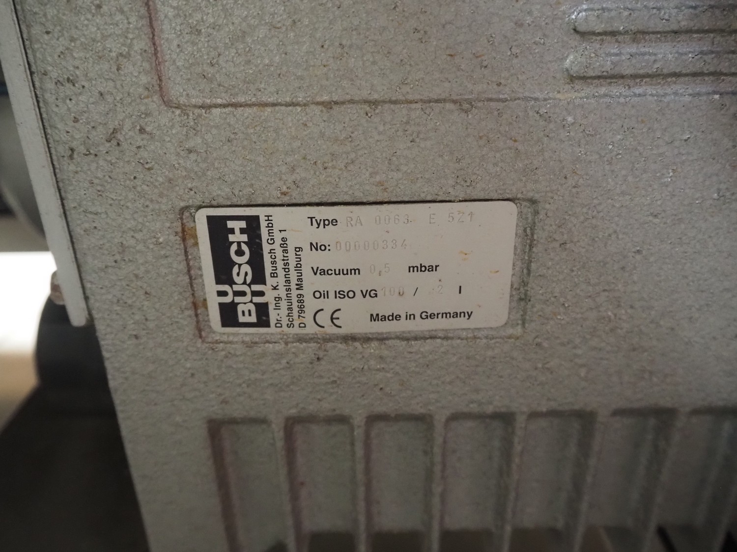 Multivac tray sealer, type: Galaxy, model: TS 355, machine number: 996, year of construction: 2000, 380 V, 3 Ph, 50 Hz, 2.3 A, 8.75 kW, film width: 500 mm, dye: (3x) 211 mm x 163 mm, with Busch vacuum pump, type: RA 0063 E 5Z1, 63 m³/h, total dimensions: 730 mm x 1250 mm x 1540 mm.