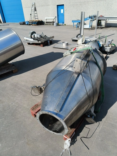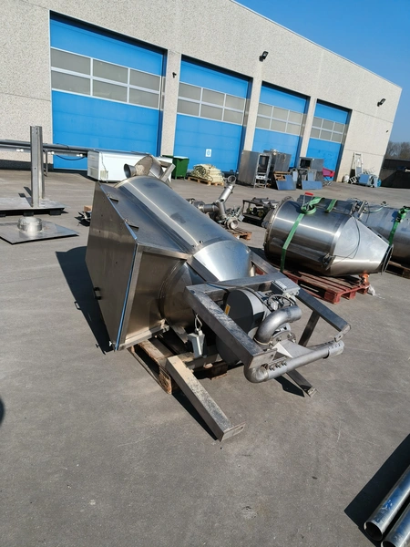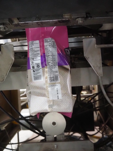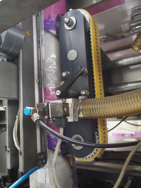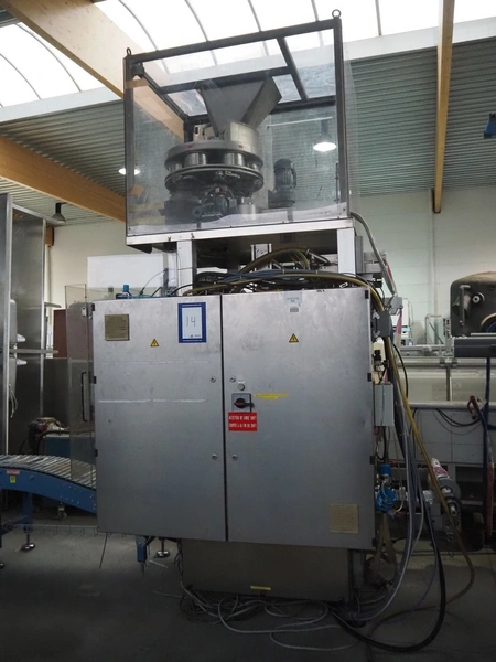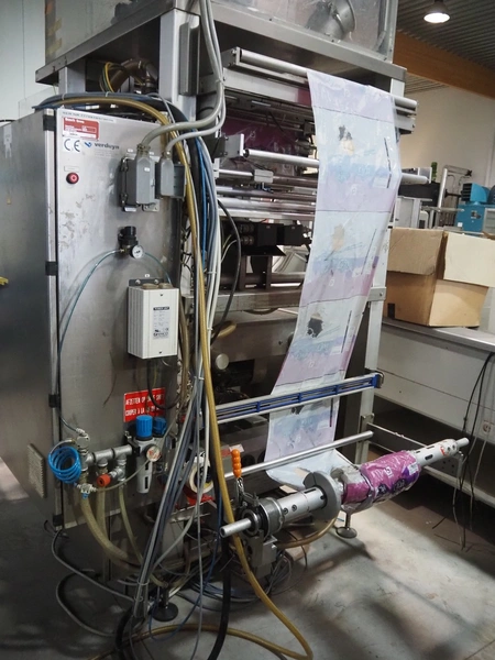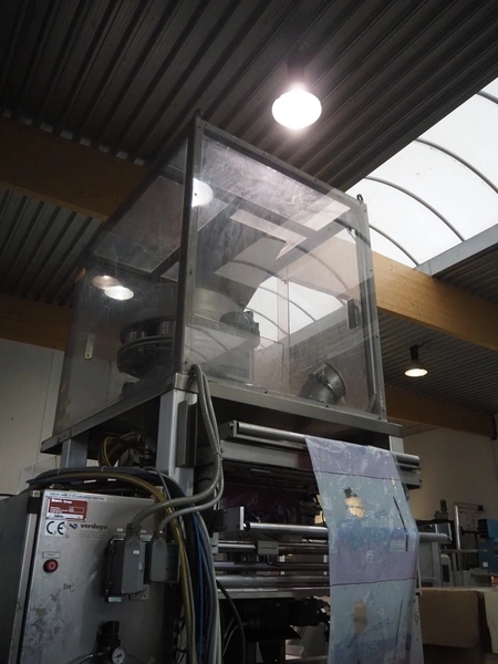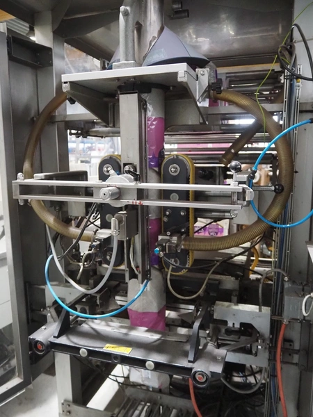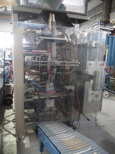Bosch Groep vertical form-, fill-, and seal machine, type: SVB 3601 A, number: 77809INS7501N, year of construction: 1996, Gardner Denver vacuum pump, type: V-VC 75, capacity: 70.0/84.0 m³ per hour, diameter pipe: 130 mm, film width: 450 mm, seal width: 360 mm, total dimensions: 2200 mm x 1550 mm x 2200 mm. With 6 head filling station, diameter: 145 mm, total dimensions: 1350 mm x 1050 mm x 1300 mm and Itra elevating belt with 90° curve, plastic belt, belt width: 400 mm, elevating height from 450 mm to 1150 mm, total dimensions: 3000 mm x 2350 mm x 1250 mm. Including large amount of extra parts.