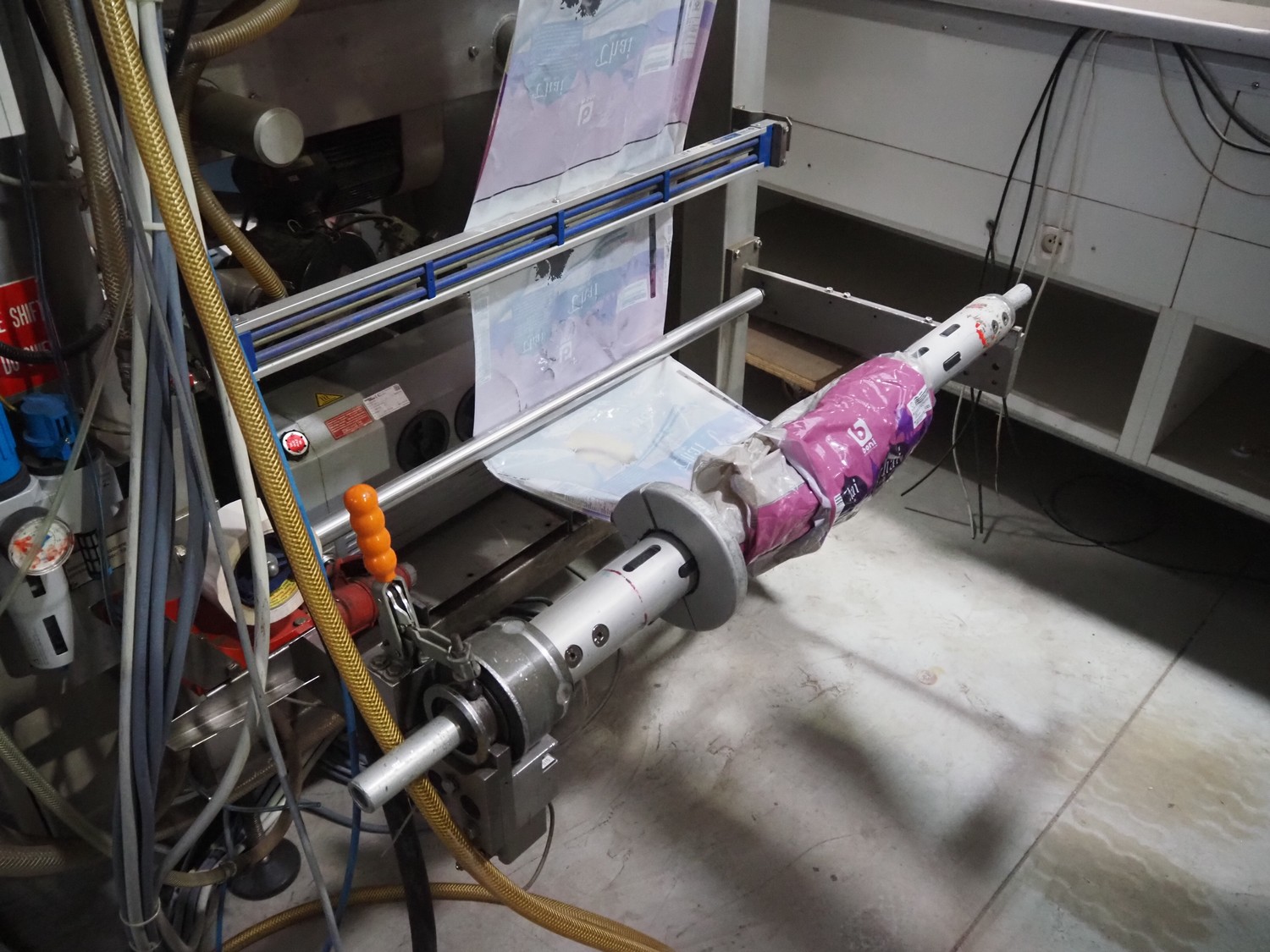 Bosch Groep vertical form-, fill-, and seal machine, type: SVB 3601 A, number: 77809INS7501N, year of construction: 1996, Gardner Denver vacuum pump, type: V-VC 75, capacity: 70.0/84.0 m³ per hour, diameter pipe: 130 mm, film width: 450 mm, seal width: 360 mm, total dimensions: 2200 mm x 1550 mm x 2200 mm. With 6 head filling station, diameter: 145 mm, total dimensions: 1350 mm x 1050 mm x 1300 mm and Itra elevating belt with 90° curve, plastic belt, belt width: 400 mm, elevating height from 450 mm to 1150 mm, total dimensions: 3000 mm x 2350 mm x 1250 mm. Including large amount of extra parts.