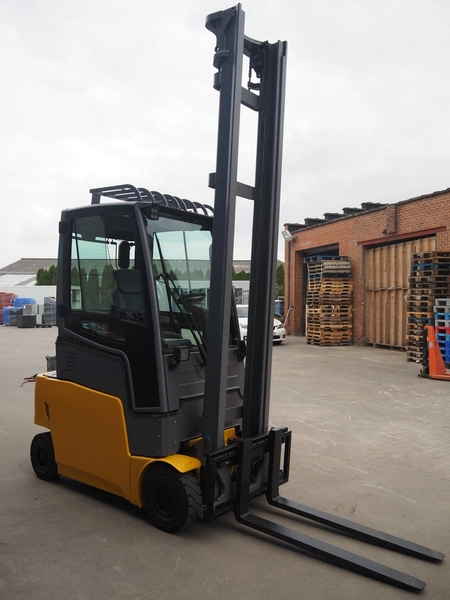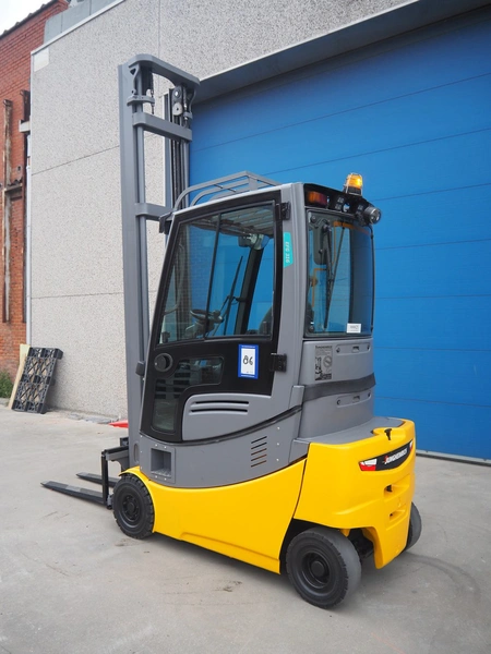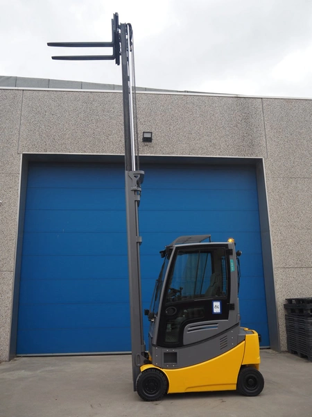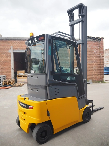 Jungheinrich electric forklift, model: EFG 316, serial number: FN505841, year of construction: 2016, rated capacity: 1600 kg, fork length: 1200 mm, total dimensions: 3400 mm x 1100 mm x 3550 mm. Including battery charger. Battery renewed in 2024.